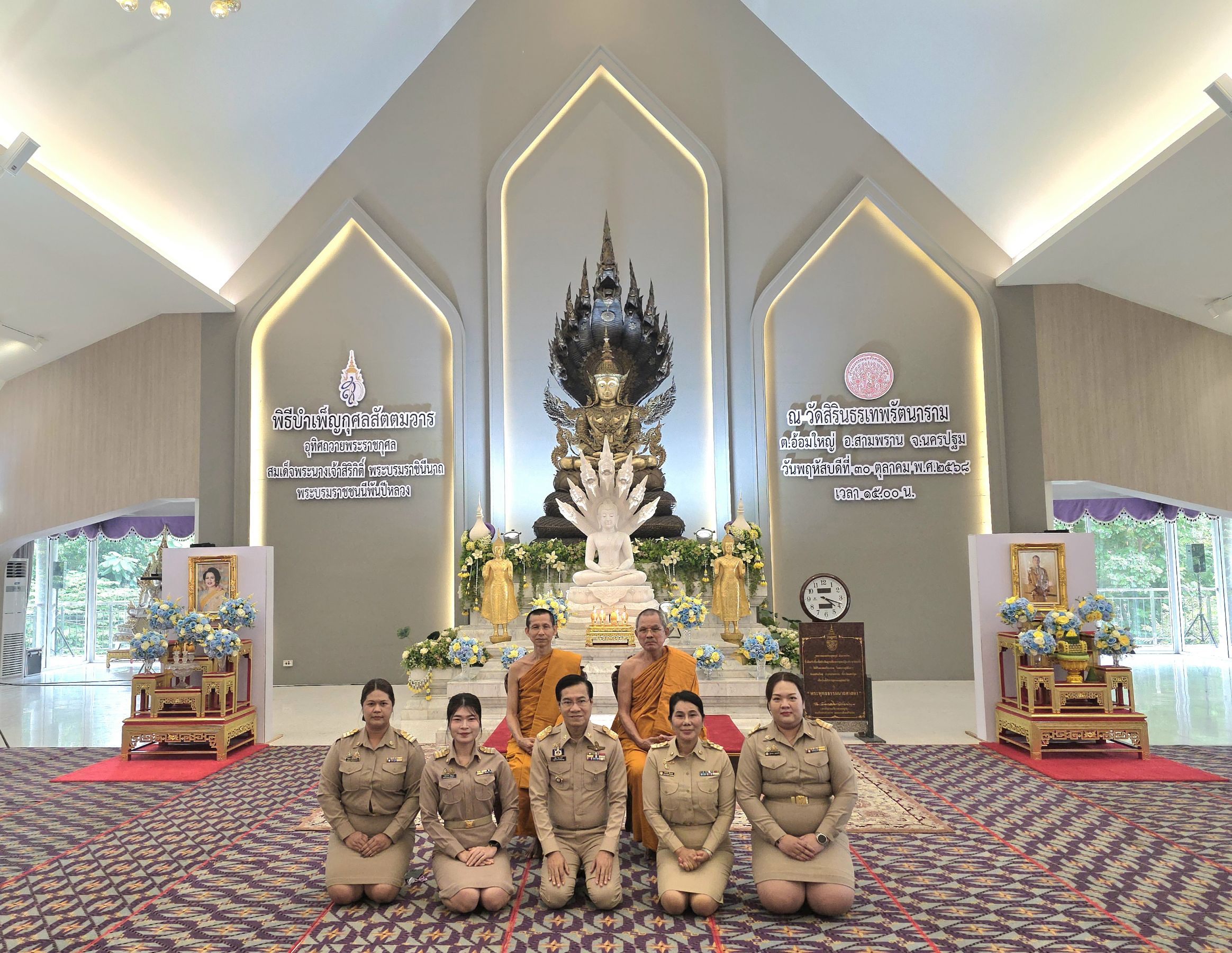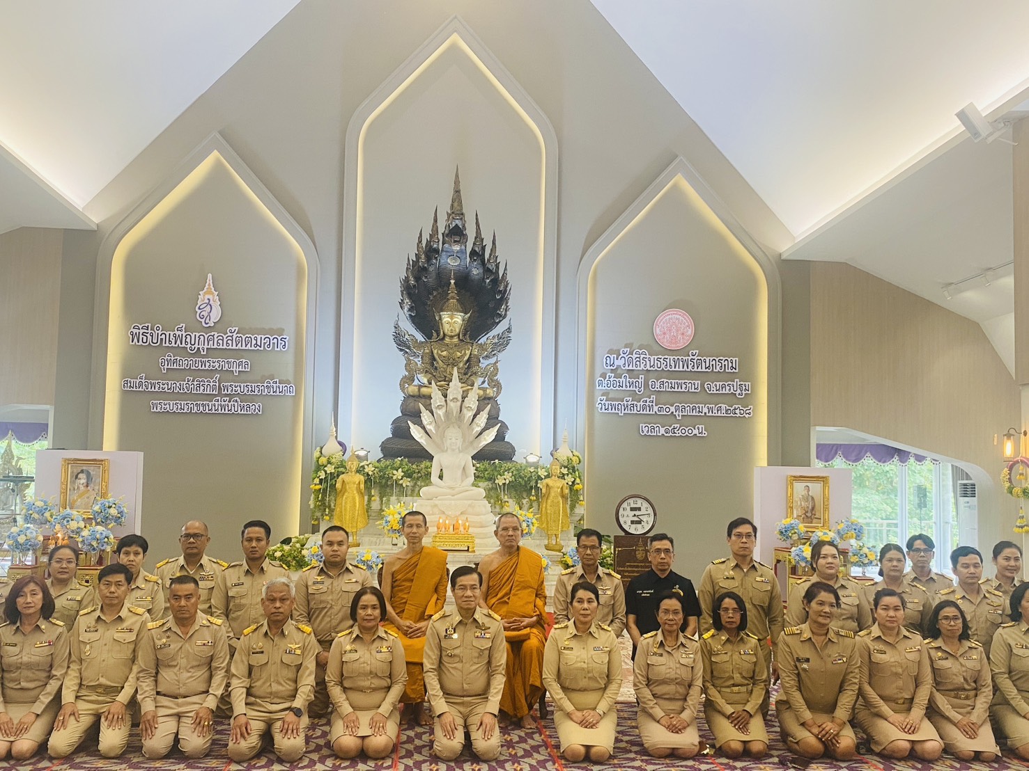 นายปรีชา ดิลกพรเมธี รองผู้ว่าราชการจังหวัดนครปฐม เป็นประธานพิธีบำเพ็ญกุศล ในวาระครบ 7 วัน (สัตตมวาร) ซึ่งจัดขึ้นโดยคณะสงฆ์ธรรมยุตจังหวัดนครปฐม เพื่ออุทิศถวายพระราชกุศลแด่ สมเด็จพระนางเจ้าสิริกิติ์ พระบรมราชินีนาถ พระบรมราชชนนีพันปีหลวง โดยมีหัวหน้าส่วนราชการ ข้าราชการ ทหาร ตำรวจ เจ้าหน้าที่จากหน่วยงานต่างๆ ตลอดจนองค์กรปกครองส่วนท้องถิ่น และประชาชนชาวจังหวัดนครปฐม เข้าร่วมพิธีด้วยความจงรักภักดีและสำนึกในพระมหากรุณาธิคุณเป็นล้นพ้นอันหาที่สุดมิได้ ณ ที่อาคารปฏิบัติธรรม เอสบี วัดสิรินธรเทพรัตนาราม อำเภอสามพราน จังหวัดนครปฐม