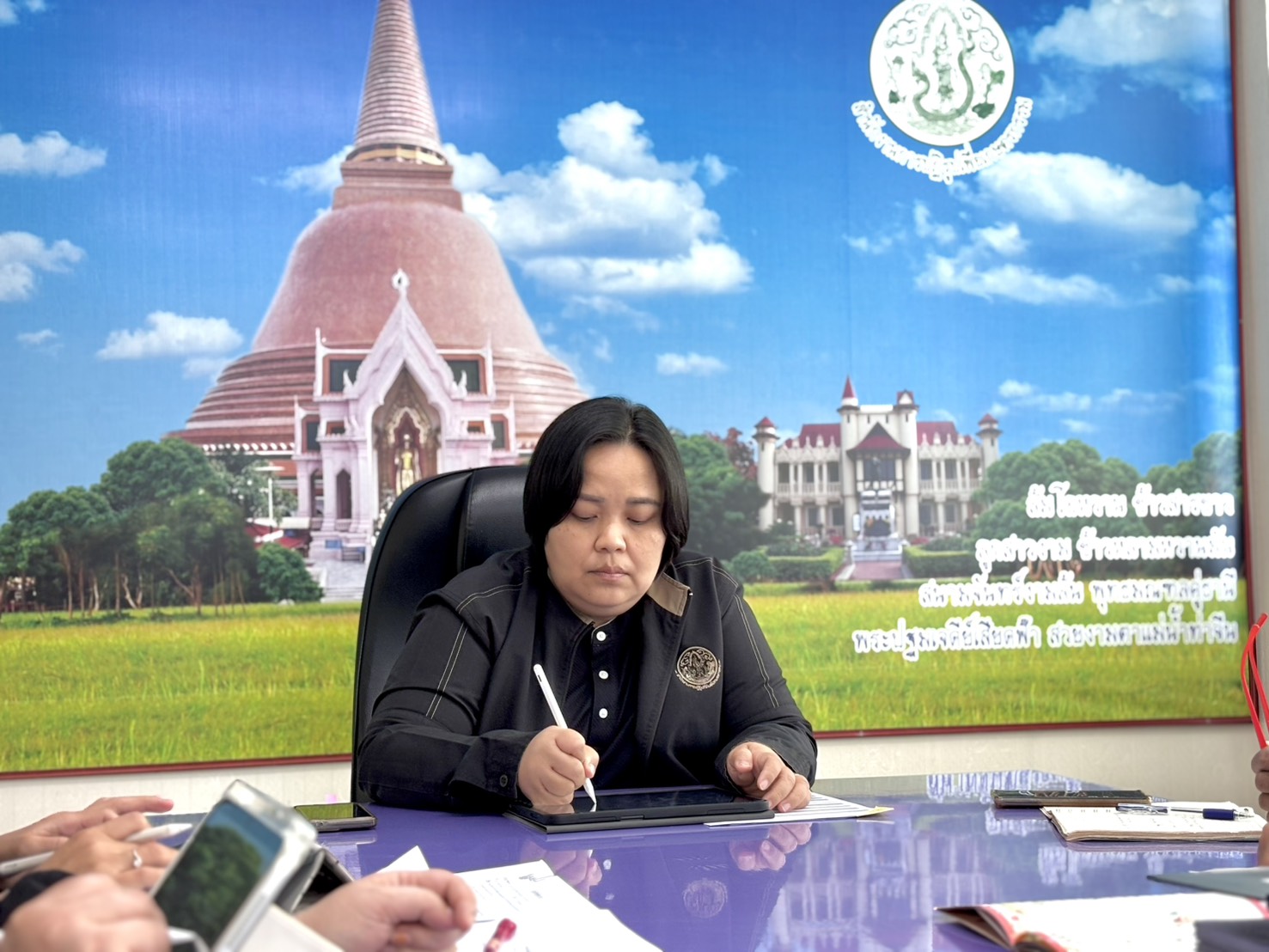 นางสาวศศิธร นาคศรีจันทร์ ปฏิรูปที่ดินจังหวัดนครปฐม เป็นประธานการประชุมสำนักงานฯ ประจำเดือนพฤศจิกายน 2568 เพื่อมอบนโยบายการทำงานแก่ผู้อำนวยการกลุ่ม ข้าราชการ พนักงานราชการ และเจ้าหน้าที่ ส.ป.ก.นครปฐม ณ ห้องประชุมสำนักงานการปฏิรูปที่ดินจังหวัดนครปฐม