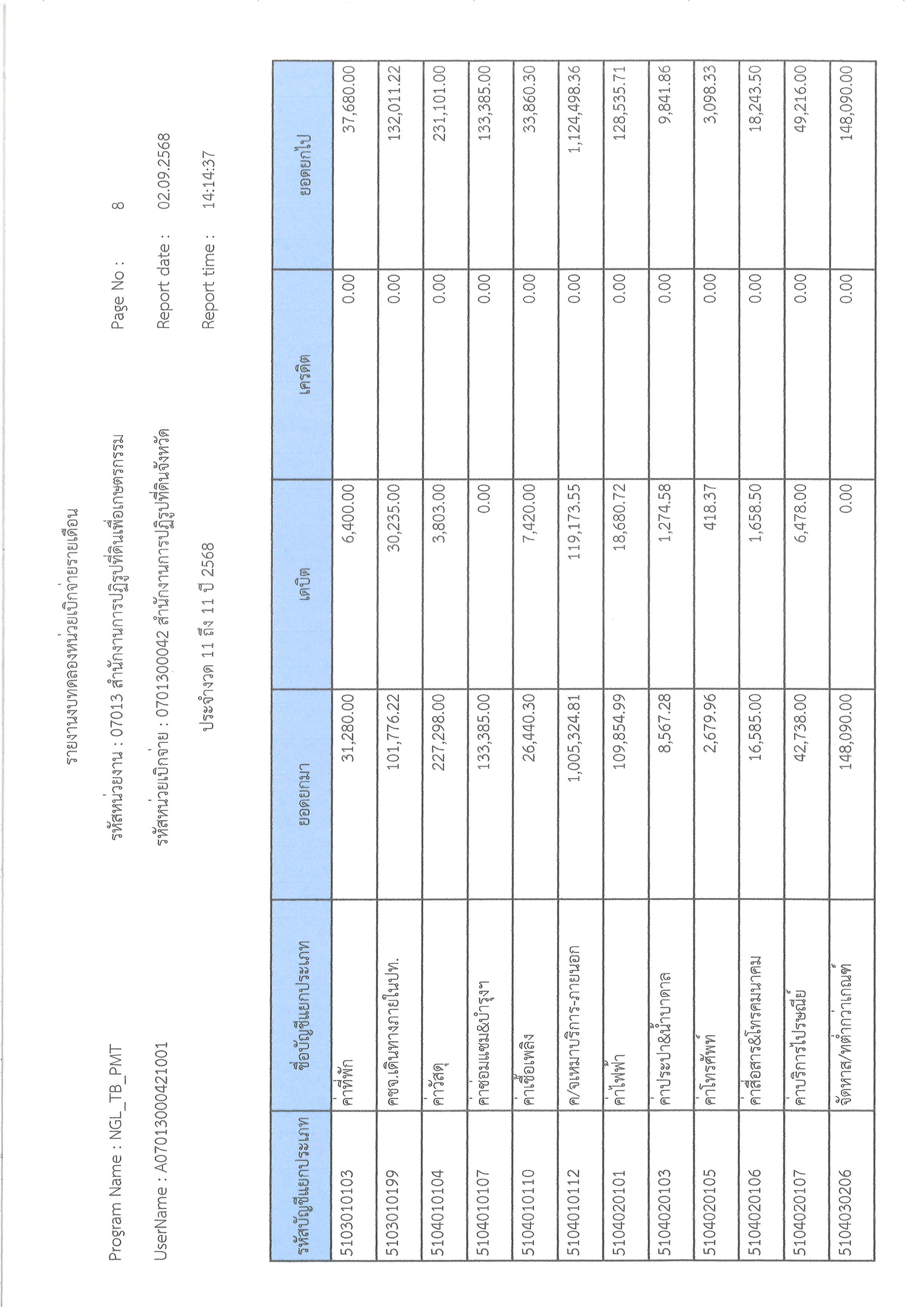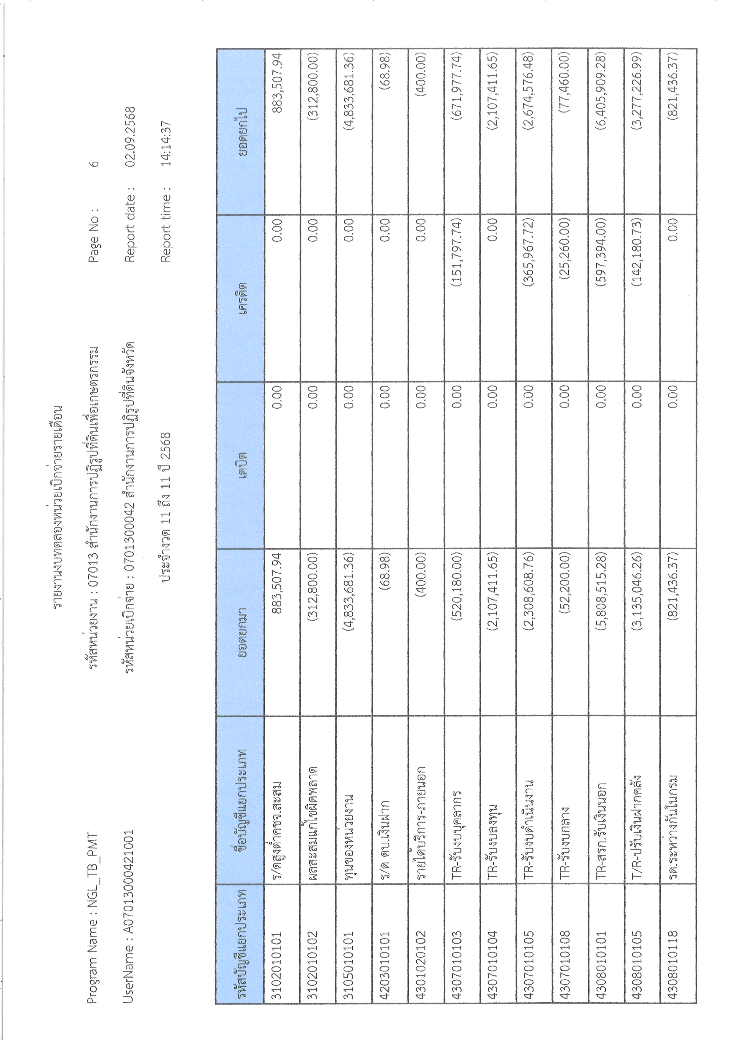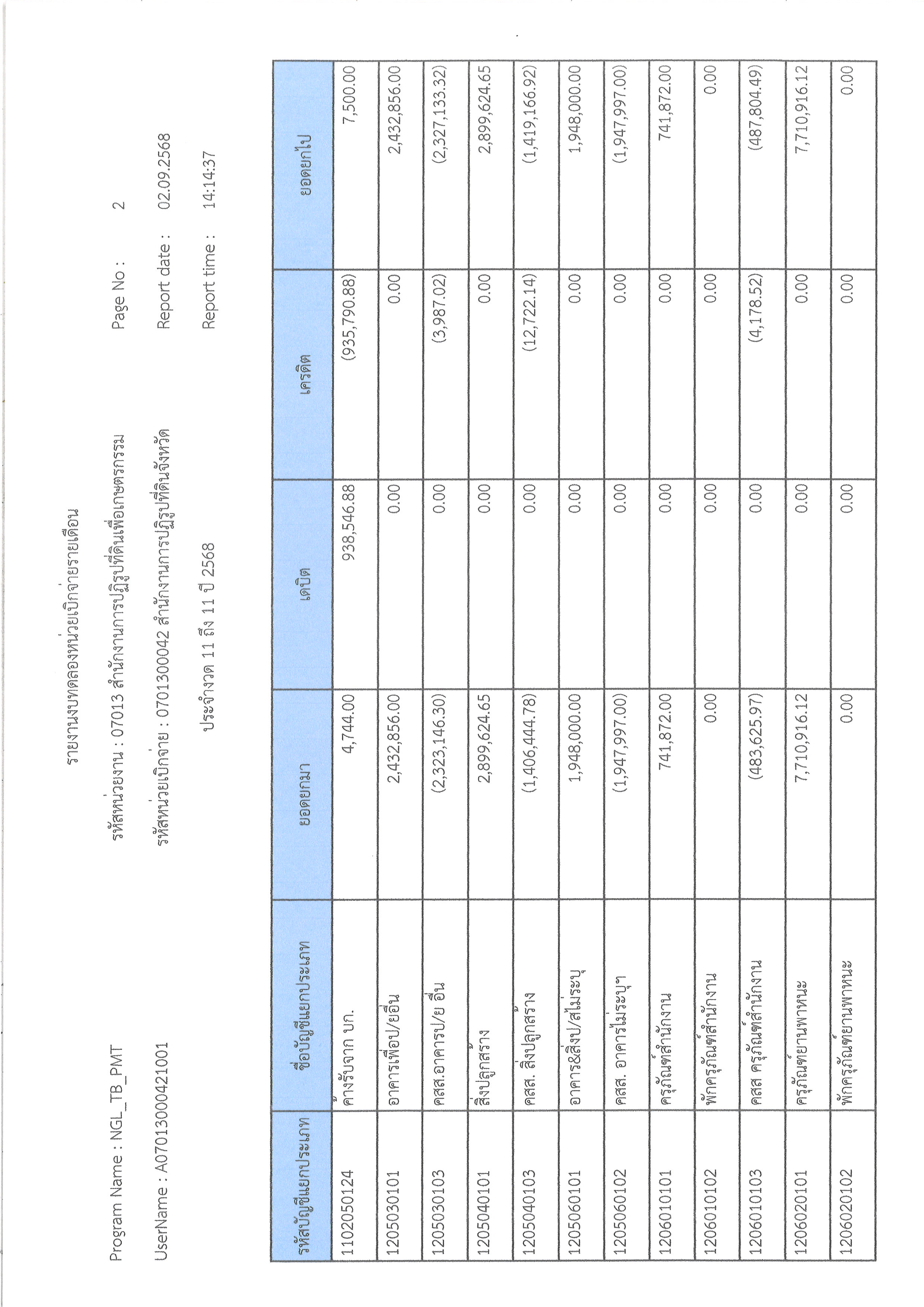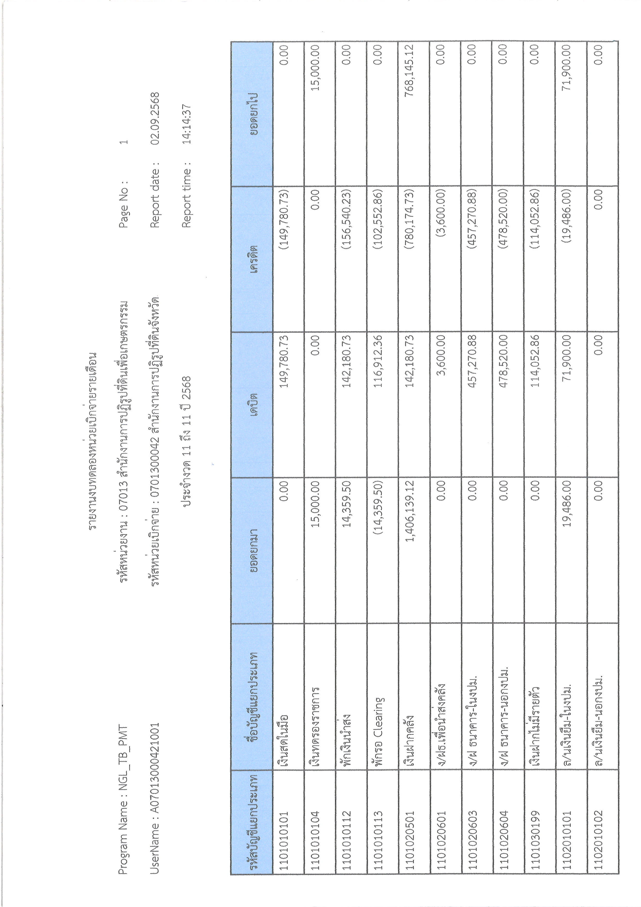 รายงานงบทดลองหน่วยเบิกจ่ายรายเดือน กันยายน 2568