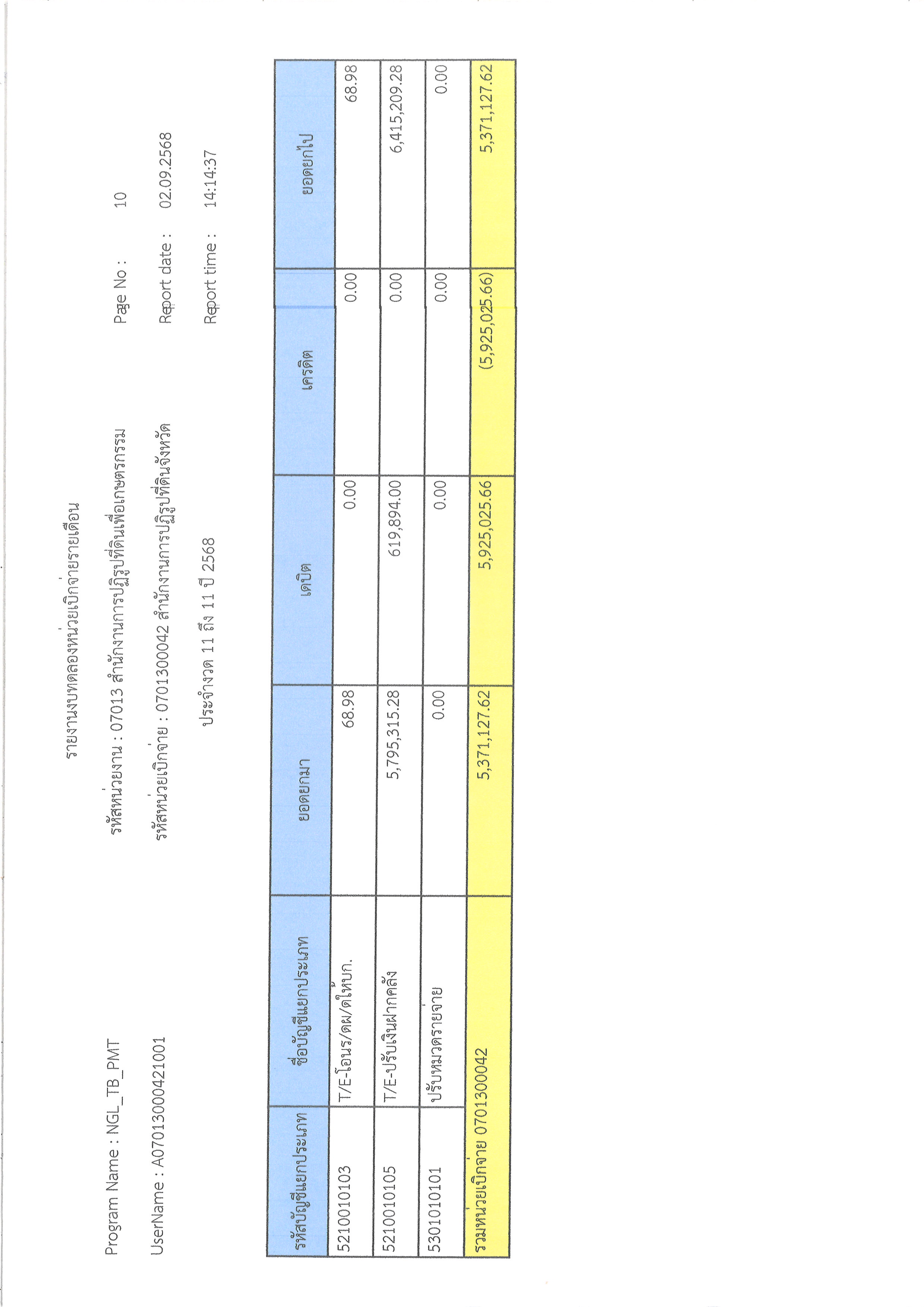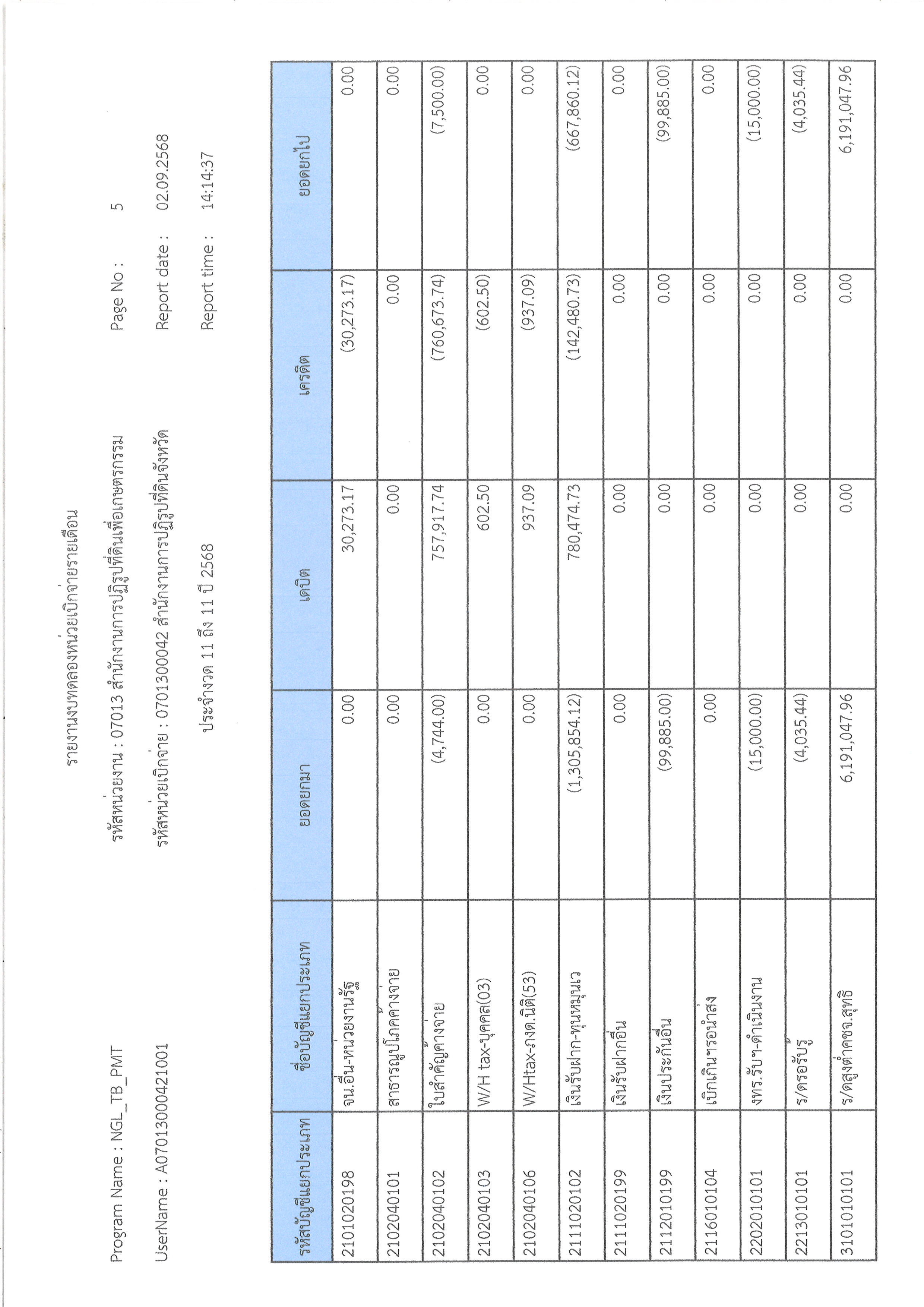รายงานงบทดลองหน่วยเบิกจ่ายรายเดือน ตุลาคม 2568