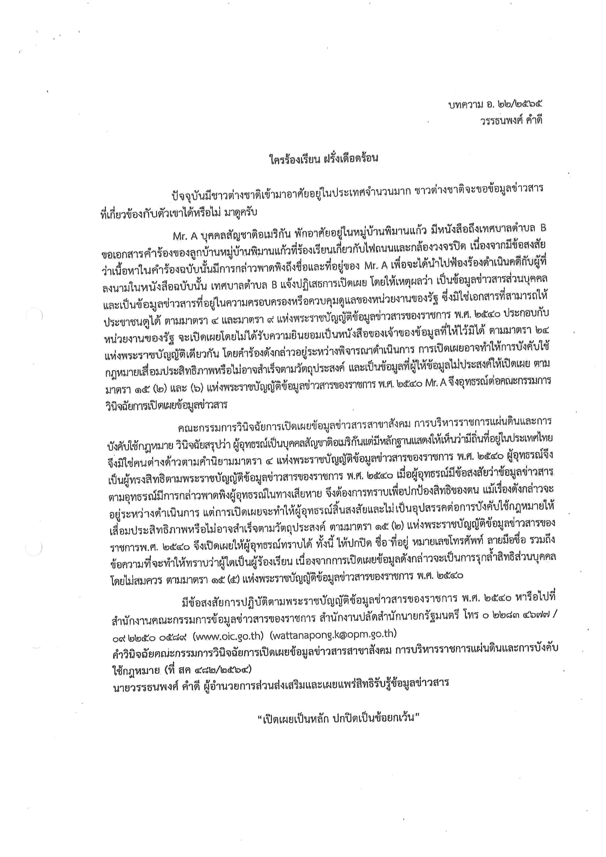 ใครร้องเรียน ฝรั่งเดือดร้อน บทความ อ.22/2565