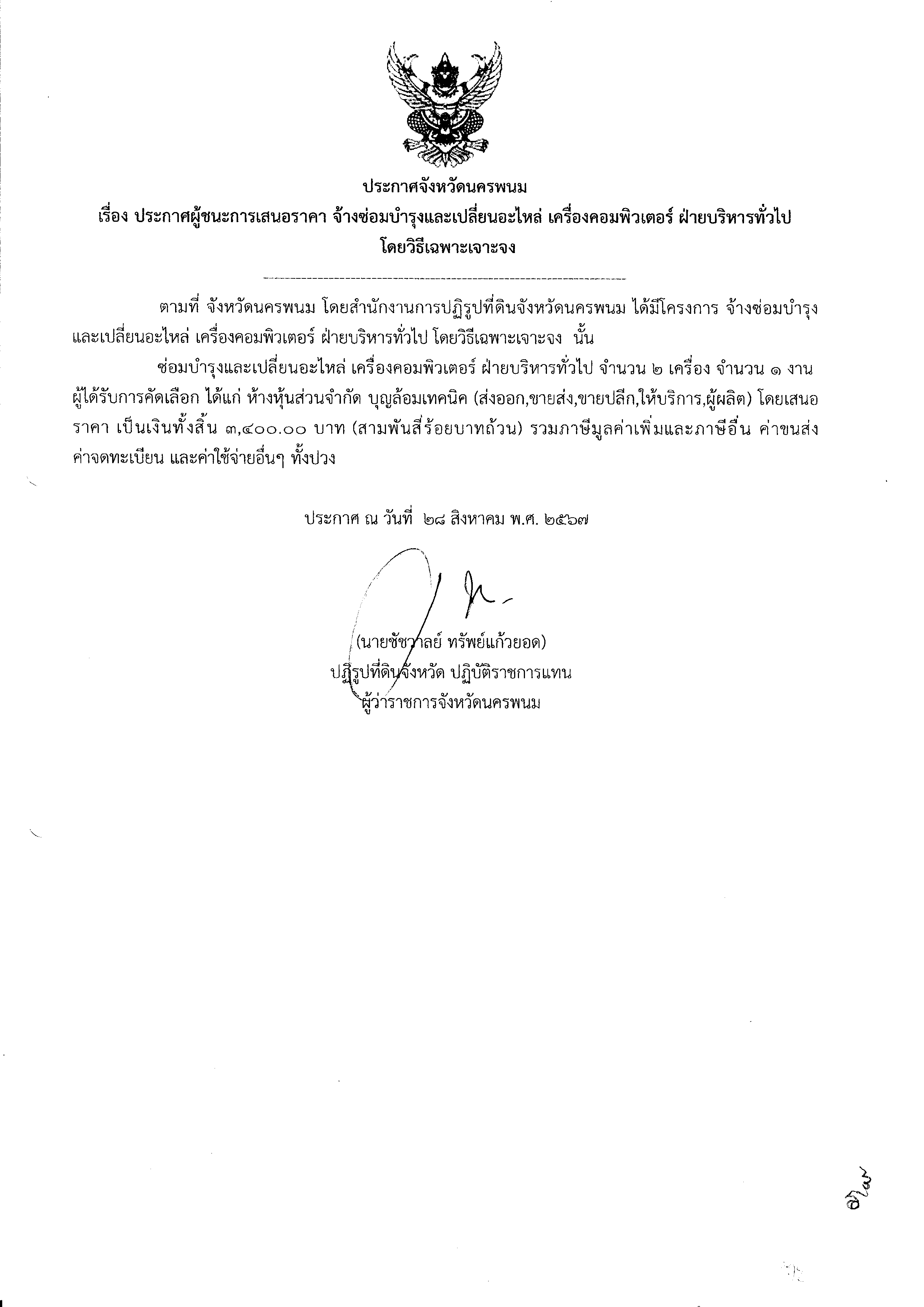 จ้างซ่อมบำรุงและเปลี่ยนอะไหล่ เครื่องคอมพิวเตอร์ ฝ่ายบริหารทั่วไป
