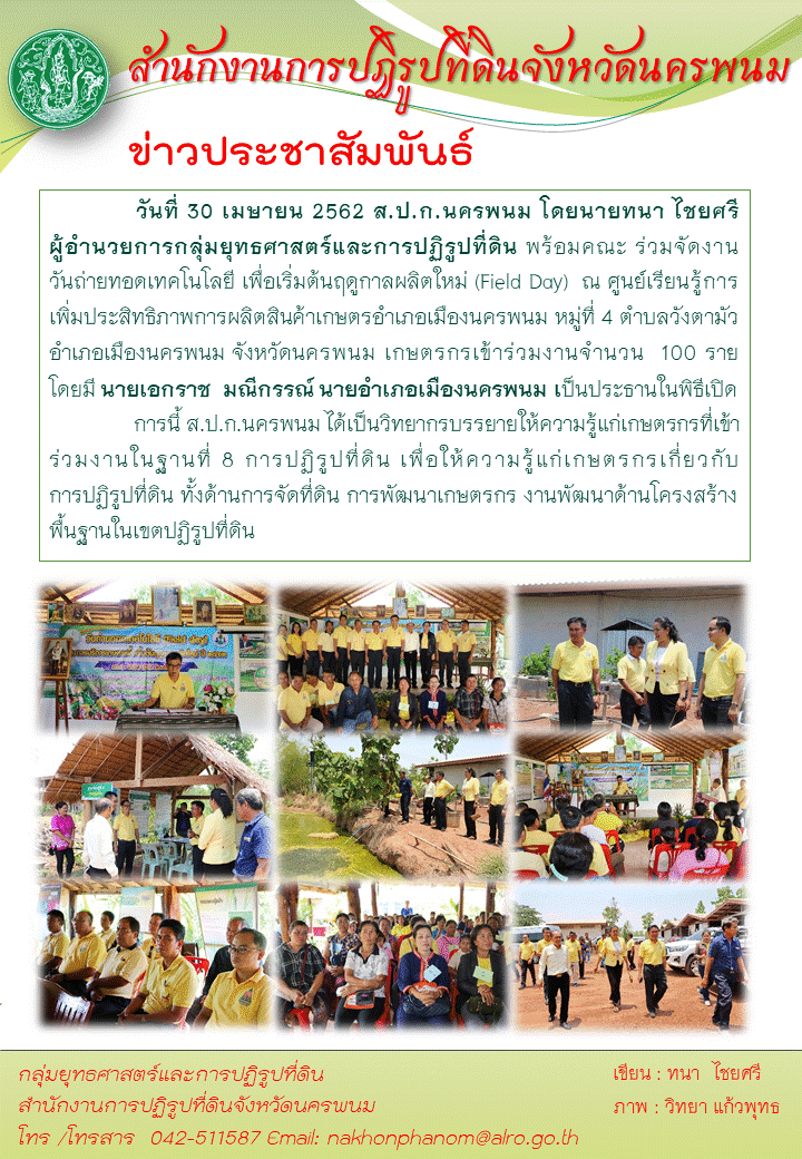 ส.ป.ก.นครพนมร่วมจัดงานวันถ่ายทอดเทคโนโลย๊ เพื่อเริ่มต้นฤดูกาลใหม่(Field day)