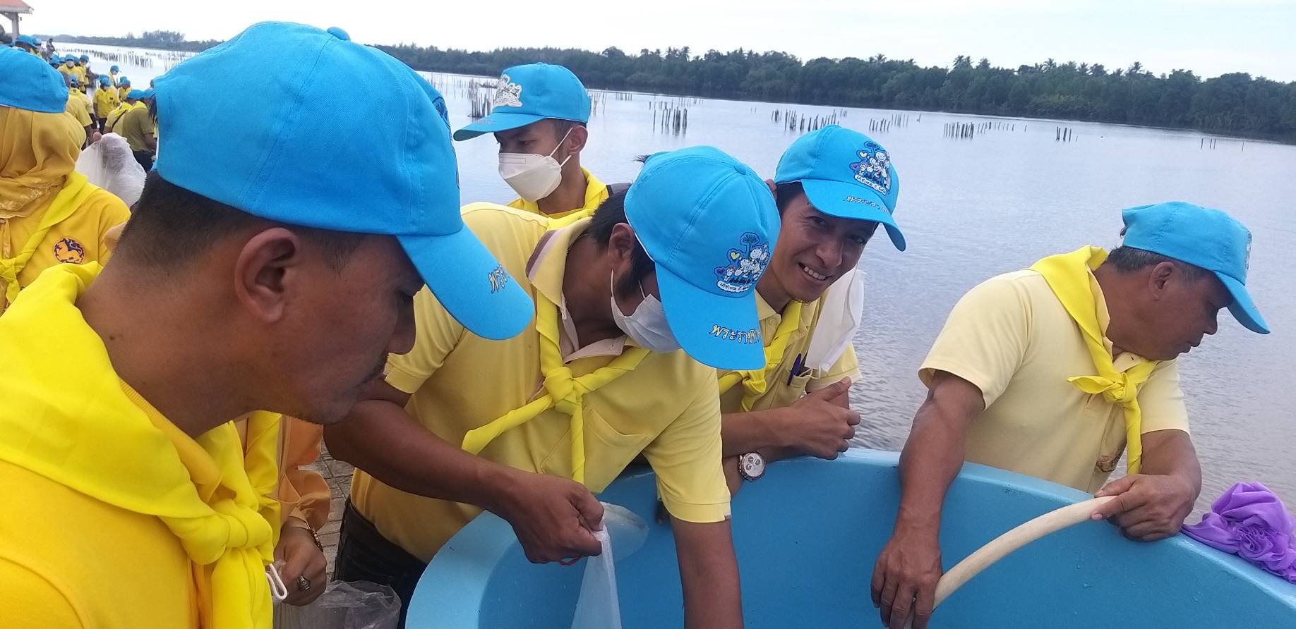 พร้อมด้วยและคณะเจ้าหน้าที่ ส.ป.ก.นราธิวาส ร่วมกิจกรรมปล่อยพันธุ์สัตว์น้ำ เฉลิมพระเกียรติ