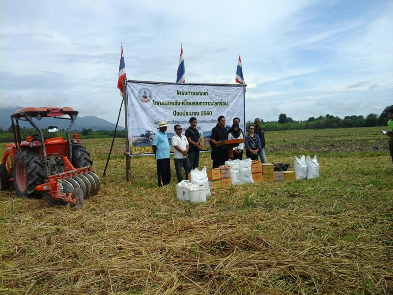 เมื่อวันที่ 9 พฤษภาคม 2560 เวลา09.30 น. สำนักงานการปฏิรูปที่ดินจังหวัดนราธิวาส โดยนายสมศักดิ์ แป้นถนอม ปฏิรูปที่ดินจังหวัดนราธิวาส ได้เข้าร่วมในโครงการรณรงค์ไถกลบตอซัง เพื่อบรรเทาภาวะโลกร้อน ปีงบประมาณ 2560 ณ บ้านชูโว หมู่ที่ 5 ตำบลบาเระใต้ อำเภอบาเจาะ จังหวัดนราธิวาส โดยมี นายมงคล นิตยบูรณ์ ผู้อำนวยการสถานีพัฒนาที่ดินนราธิวาส เป็นประธานในพิธี และหัวหน้าส่วนราชการต่างๆในจังหวัดนราธิวาสร่วมเป็นเกียรติในพิธีเปิดโครงการฯ เพื่อรณรงค์ให้เกษตรกรตระหนักถึงความสำคัญของการไถกลบตอซัง แทนการเผาตอซังเพื่อเป็นการช่วยรักษาสภาพผืนดินให้สามารถทำการเกษตรได้อย่างมีประสิทธิภาพและยั่งยืน