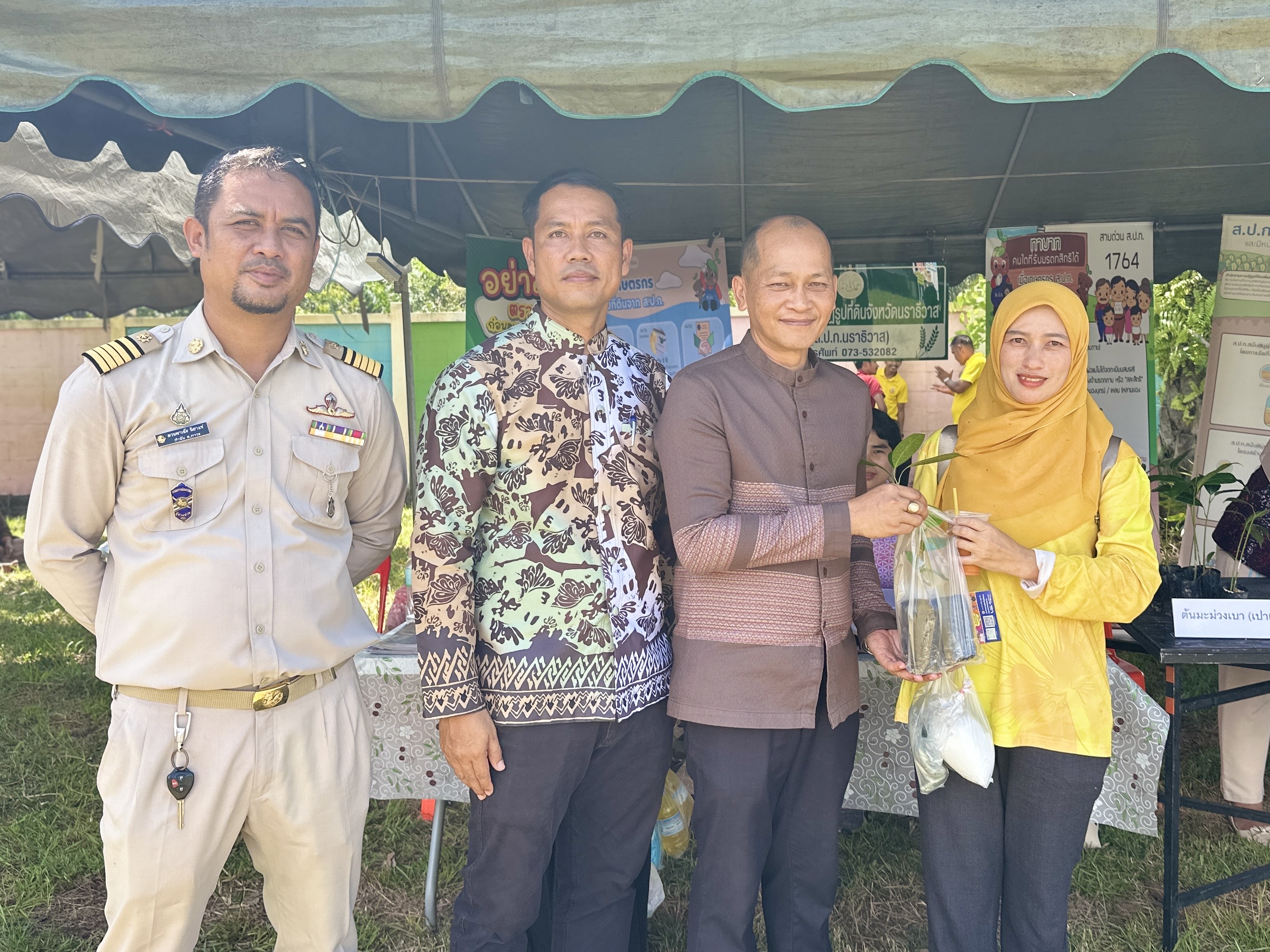 วันที่ 21 กรกฎาคม 2568 นายประเสริฐ กองสง ปฏิรูปที่ดินจังหวัดนราธิวาส นายปราโมทย์ จิตต์สกูล ผู้อำนวยการกลุ่มยุทธศาสตร์และการปฏิรูปที่ดิน และ เจ้าหน้าที่ ส.ป.ก.นราธิวาส เข้าร่วมและออกหน่วยบริการ โครงการจังหวัดเคลื่อนที่ บำบัดทุกข์ บำรุงสุข สร้างร้อยยิ้ม ให้ประชาชน ประจำปีงบประมาณ พ.ศ.2568 ครั้งที่ 7 ณ โรงเรียนราชภักดี หมู่ที่ 7 ตำบลสุไหงปาดี อำเภอสุไหงปาดี จังหวัดนราธิวาส โดยมี นายกฤษณนันท์ กำไร รองผู้ว่าราชการจังหวัดนราธิวาส เป็นประธานในพิธี พร้อมนี้ได้มอบหมายให้ นางก้อติม๊ะ จันทร์หอม เจ้าหน้าที่ปฏิรูปที่ดิน พร้อมด้วยเจ้าหน้าที่ ส.ป.ก.นราธิวาส ร่วมจัดนิทรรศการ และออกหน่วยบริการ พร้อมทั้งให้ความรู้เกี่ยวกับกฎหมาย ส.ป.ก. กฎหมายทั่วไป มอบเอกสารเผยแพร่ มอบพันธุ์กล้าไม้ ต้นพะยอม ต้นมะม่วงเบา ต้นมะม่วงหิมพานต์ จำนวน 500 ต้น ให้เกษตรกร ที่มาใช้บริการ จำนวน 60 ราย