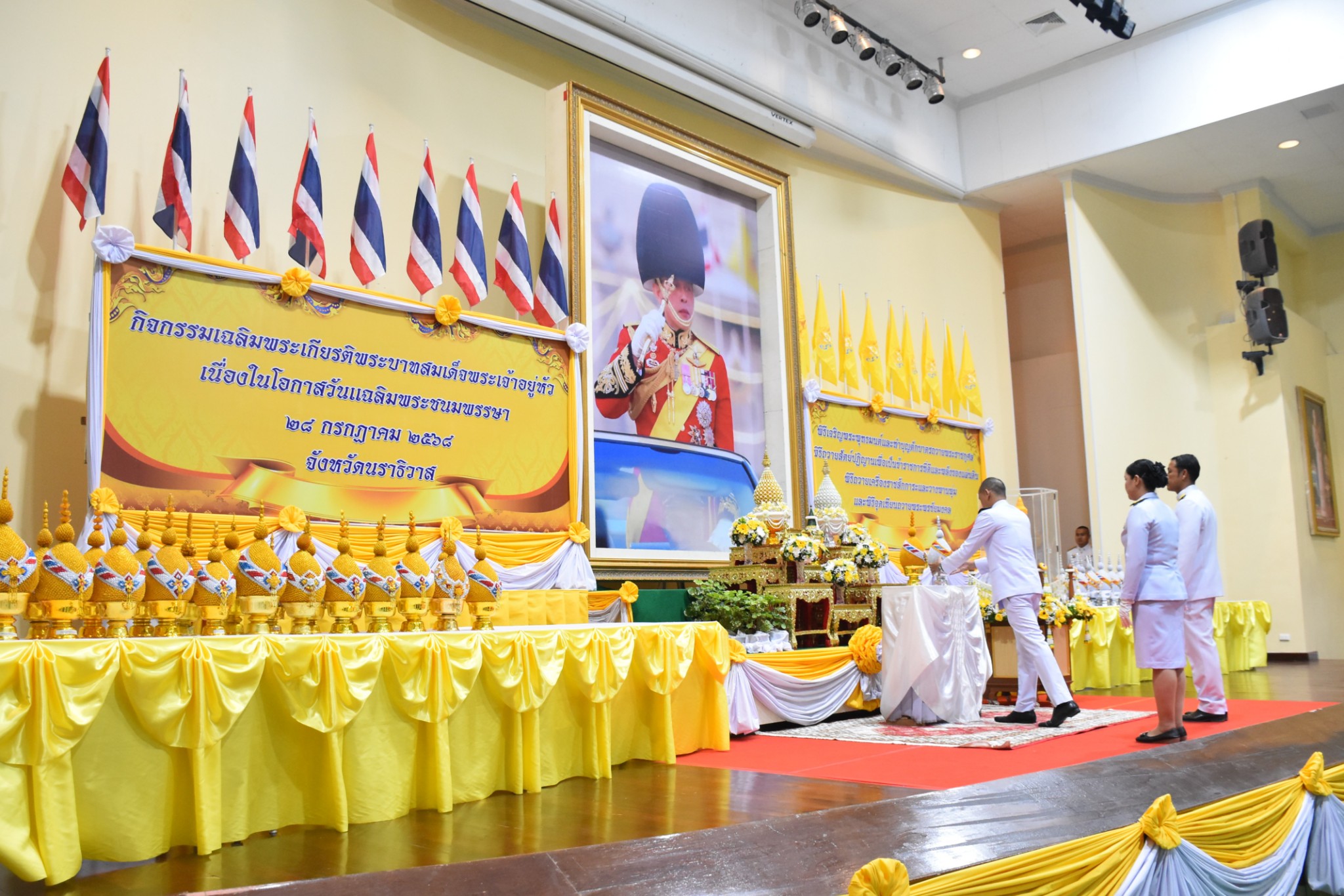 2.เวลา 08.00 น.พิธีทางศาสนามหามงคล เฉลิมพระเกียรติฯ และพิธีถวายสัตย์ปฏิญาณเพื่อเป็นข้าราชการที่ดี และพลังของแผ่นดิน (ต่อเนื่องจากพิธีทางศาสนามหามงคลฯ) ณ หอประชุมเฉลิมพระเกียรติ 7 รอบ พระชนมพรรษา ศาลากลางจังหวัดนราธิวาส
