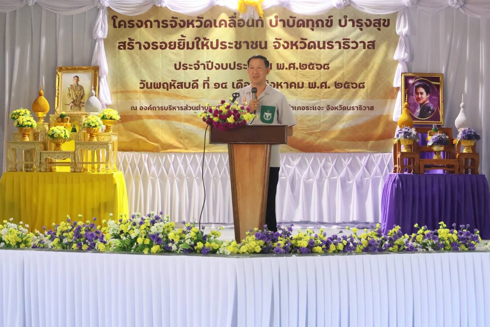 วันที่ 14 สิงหาคม 2568 นายประเสริฐ กองสง ปฏิรูปที่ดินจังหวัดนราธิวาส มอบหมายให้ นายปราโมทย์ จิตต์สกูล ผู้อำนวยการกลุ่มยุทธศาสตร์และการปฏิรูปที่ดิน เข้าร่วมและออกหน่วยบริการ โครงการจังหวัดเคลื่อนที่ บำบัดทุกข์ บำรุงสุข สร้างร้อยยิ้มให้ประชาชน ประจำปีงบประมาณ พ.ศ.2568 ครั้งที่ 10 ณ องค์การบริหารส่วนตำบลเฉลิม หมู่ที่ 5 ตำบลเฉลิม อำเภอระแงะ จังหวัดนราธิวาส โดยมี ว่าที่ร้อยตรี ตระกูล โทธรรม ผู้ว่าราชการจังหวัดนราธิวาส เป็นประธานในพิธี พร้อมนี้ได้มอบหมายให้ นางก้อติม๊ะ จันทร์หอม เจ้าหน้าที่ปฏิรูปที่ดิน พร้อมด้วยเจ้าหน้าที่ ส.ป.ก.นราธิวาส ร่วมจัดนิทรรศการ และออกหน่วยบริการ พร้อมทั้งให้ความรู้เกี่ยวกับกฎหมาย ส.ป.ก. กฎหมายทั่วไป มอบเอกสารเผยแพร่ มอบพันธุ์กล้าไม้ ต้นพะยอม ต้นยางวาด จำนวน 500 ต้น ให้เกษตรกร ที่มาใช้บริการ จำนวน 111 ราย