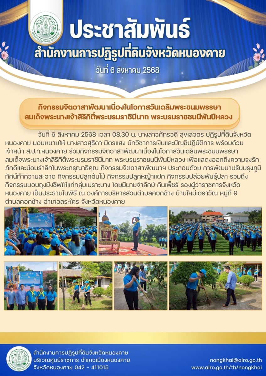 ปฏิรูปที่ดินจังหวัดหนองคาย มอบเจ้าหน้าที่ ส.ป.ก.หนองคาย ร่วมกิจกรรมจิตอาสาพัฒนา เนื่องในโอกาสวันเฉลิมพระชนมพรรษาสมเด็จพระนางเจ้าสิริกิติ์พระบรมราชินีนาถ พระบรมราชชนนีพันปีหลวง