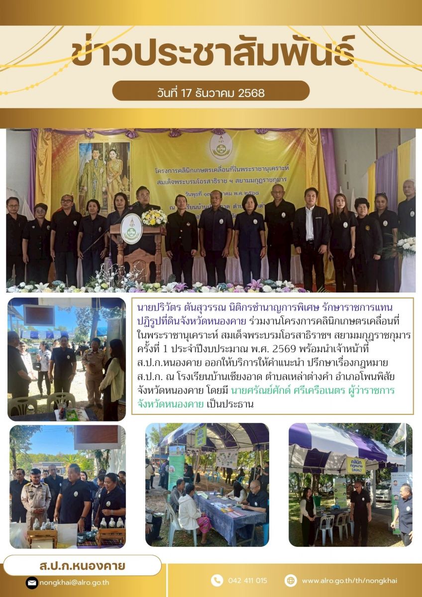 ส.ป.ก.หนองคาย เข้า่ร่วมโครงการคลินิกเกษตรเคลื่อนที่ฯ ครั้งที่ 1 ประจำปีงบประมาณ พ.ศ. 2569