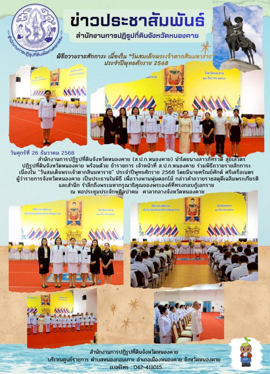 นางสาวภัทรวดี สุขเสวตร ปฏิรูปที่ดินจังหวัดหนองคาย พร้อมเจ้าหน้าที่ ส.ป.ก.หนองคาย ร่วมพิธีถวายราชสักการะเนื่องใน "วันสมเด็จพระเจ้าตากสินมหาราช" ประจำปีพุทธศักราช 2568