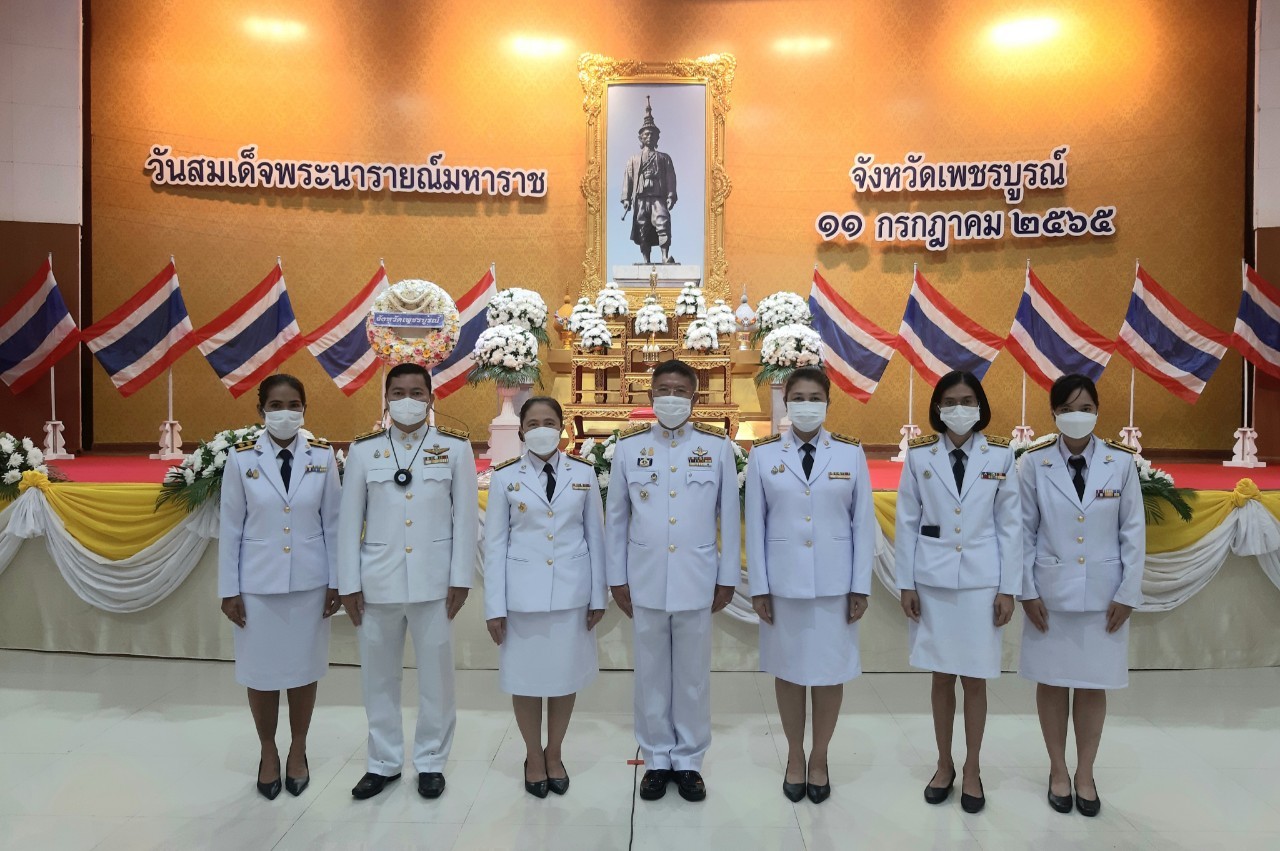 วันจันทร์ที่ 11 กรกฎาคม พ.ศ. 2565 เวลา 08.30 น. สำนักงานการปฏิรูปที่ดินจังหวัดเพชรบูรณ์ ร่วมพิธีวันสมเด็จพระนารายณ์มหาราช เพื่อเป็นการรำลึกถึงพระเกียรติคุณ และแสดงความกตัญญูกตเวทีต่อพระมหากรุณาธิคุณของสมเด็จพระนารายณ์มหาราช โดยมีนายอำนาจ แย้มศิริ รองผู้ว่าราชการจังหวัดเพชรบูรณ์ เป็นประธานวางพวงมาลาถวายสักการะ พร้อมด้วยหัวหน้าส่วนราชการ และข้าราชการ เข้าร่วมพิธีวางพวงมาลาถวายราชสักการะ เนื่องในวันสมเด็จพระนารายณ์มหาราช ประจำปี 2565 ณ หอประชุมศูนย์ราชการจังหวัดเพชรบูรณ์ อำเภอเมืองเพชรบูรณ์ จังหวัดเพชรบูรณ์