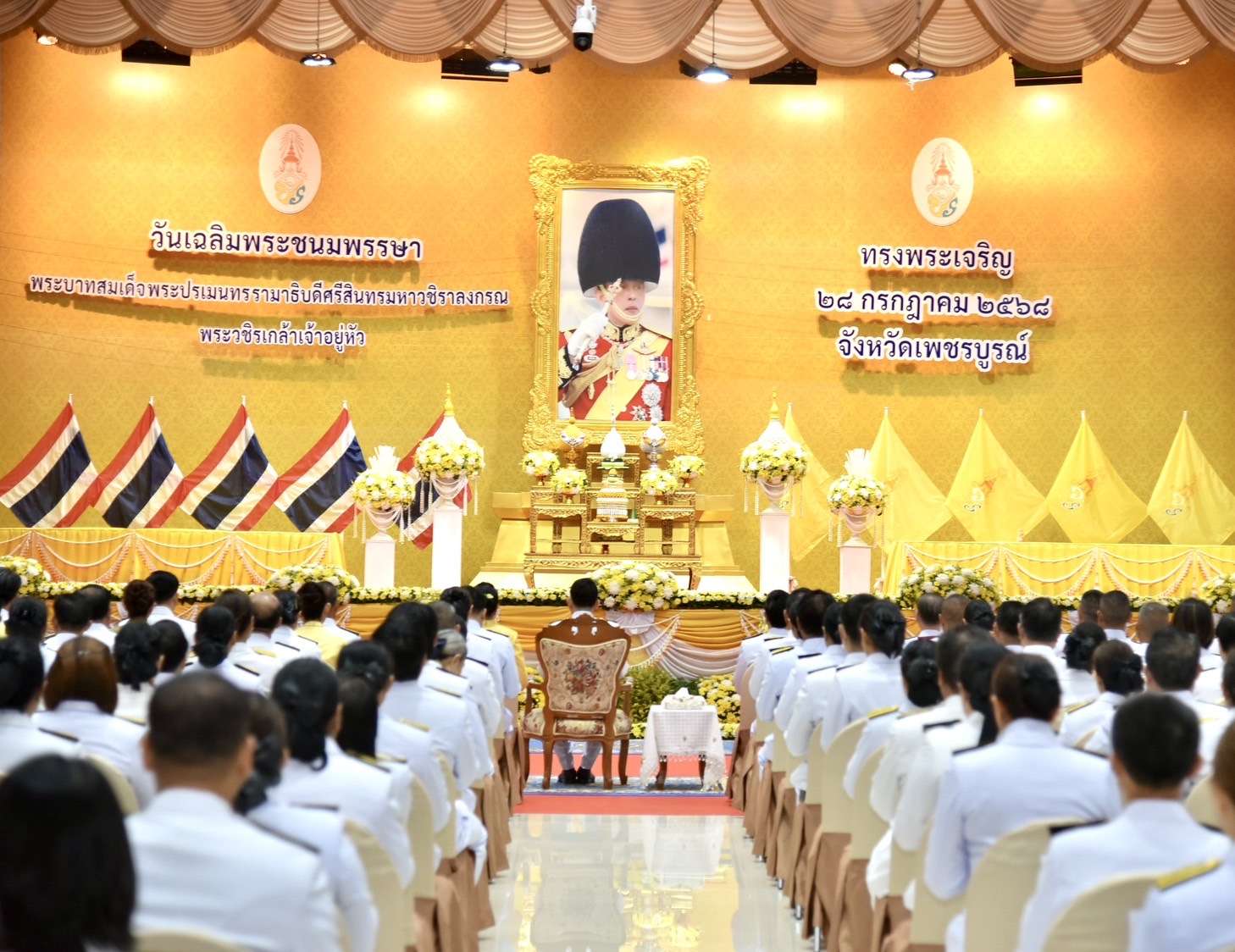 00000วันจันทร์ที่ 28 กรกฎาคม 2568 นายรุ่งโรจน์ สถาพรปฏิรูปที่ดินจังหวัดเพชรบูรณ์ พร้อมด้วยเจ้าหน้าที่ ส.ป.ก.เพชรบูรณ์ เข้าร่วมพิธีเจริญพระพุทธมนต์และทำบุญตักบาตรเพื่อถวายพระราชกุศล ซึ่งในครั้งนี้จังหวัดเพชรบูรณ์จัดประกอบพิธีทางศาสนา 3 ศาสนา และประกอบพิธีถวายสัตย์ปฏิญาณเพื่อเป็นข้าราชการที่ดีและพลังของแผ่นดิน เฉลิมพระเกียรติพระบาทสมเด็จพระเจ้าอยู่หัว เนื่องในโอกาสวันเฉลิมพระชนมพรรษา 28 กรกฎาคม 2568 ณ หอประชุมศูนย์ราชการจังหวัดเพชรบูรณ์ โดยนายศรัณยู มีทองคำ ผู้ว่าราชการจังหวัดเพชรบูรณ์เป็นประธาน พร้อมด้วยนางรุ่งระวี มีทองคำ นายกเหล่ากาชาดจังหวัดเพชรบูรณ์ รองผู้ว่าราชการจังหวัดเพชรบูรณ์ หัวหน้าส่วนราชการ ข้าราชการ เจ้าหน้าที่ จิตอาสาพระราชทาน และประชาชนจังหวัดเพชรบูรณ์เข้าร่วมพิธีอย่างพร้อมเพรียง