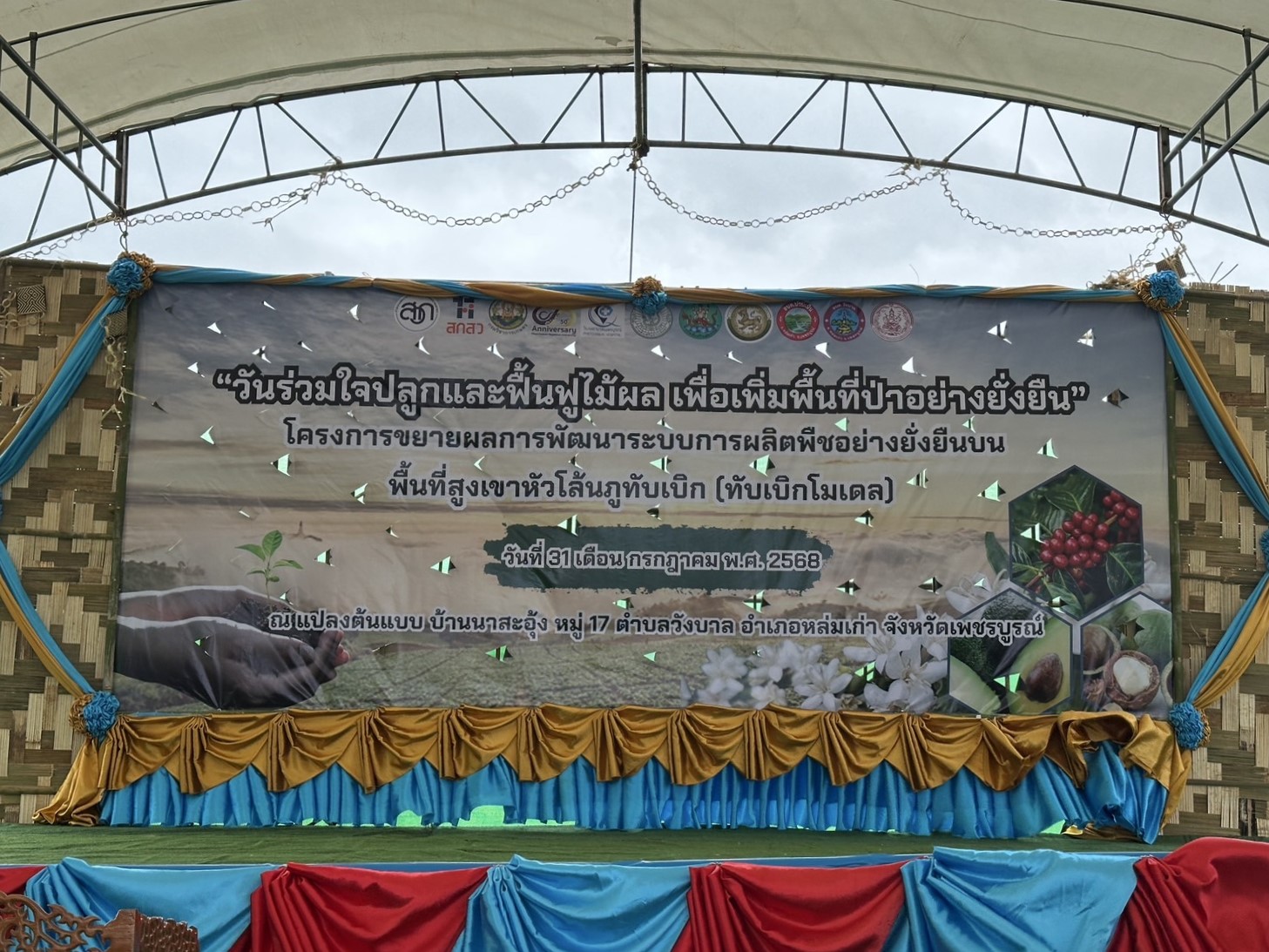00000วันพฤหัสบดีที่ 31 กรกฎาคม 2568 เวลา 09.45 น. นายรุ่งโรจน์ สถาพร ปฏิรูปที่ดินจังหวัดเพชรบูรณ์ พร้อมด้วยเจ้าหน้าที่ ส.ป.ก.เพชรบูรณ์ เข้าร่วมกิจกรรมวันร่วมใจปลูกและฟื้นฟูไม้ผล เพื่อเพิ่มพื้นที่ป่าอย่างยั่งยืน โครงการขยายผลการพัฒนาระบบการผลิตพืชอย่างยั่งยืนบนพื้นที่สูงเขาหัวโล้นภูทับเบิก (ทับเบิกโมเดล) (ปีที่ 2) โดยนายกกชัย ฉายรัศมีกุล รองผู้ว่าราชการจังหวัดเพชรบูรณ์ เป็นประธานกล่าวเปิดงาน ณ แปลงต้นแบบบ้านนาสะอุ้ง หมู่ที่ 17 ตำบลวังบาล อำเภอหล่มเก่า จังหวัดเพชรบูรณ์