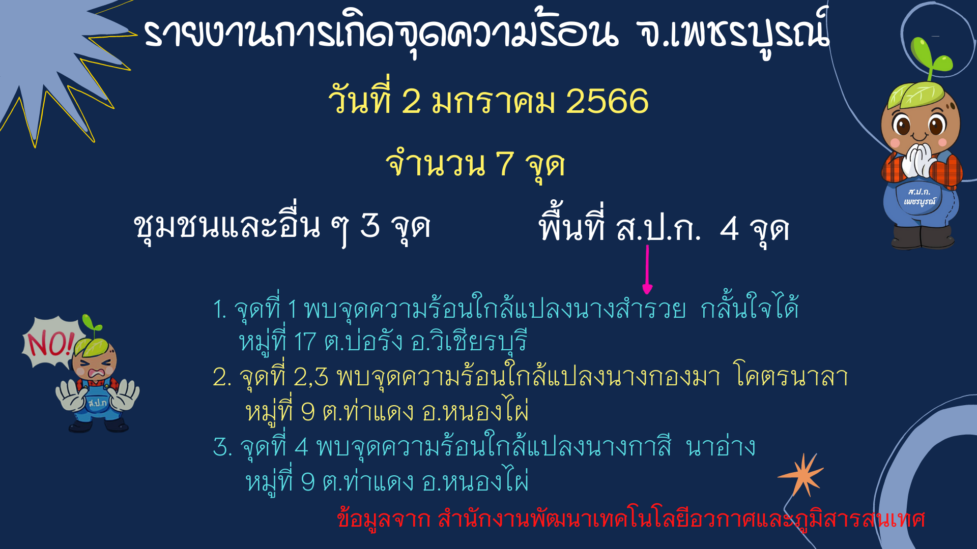 รายงานการเกิดจุดความร้อนวันที่ 2 ม.ค. 2566