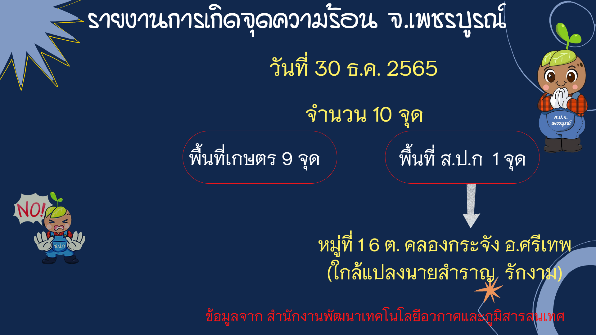 รายงานการเกิดจุดความร้อนวันที่ 30 ธ.ค.2565