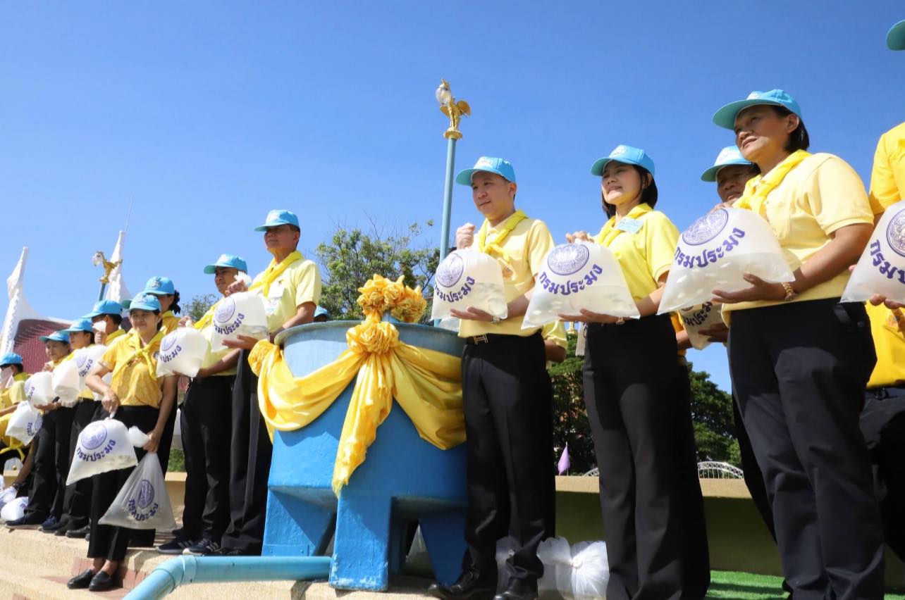 ร่วมกันทำความสะอาด กวาดพื้น เก็บใบไม้ ปรับภูมิทัศน์ และปล่อยพันธุ์ปลา