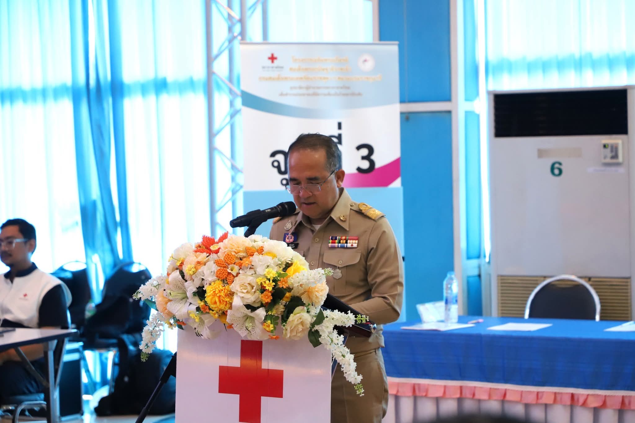 โดยมี "นายเตช บุนนาค" เลขาธิการสภากาชาดไทย เป็นประธานในพิธีฯ พร้อมด้วย "นายกฤษฎา บุญราช" ผู้ช่วยเลขาธิการสภากาชาดไทย และผู้อำนวยการสำนักงานบริหารกิจการเหล่ากาชาด สภากาชาดไทย