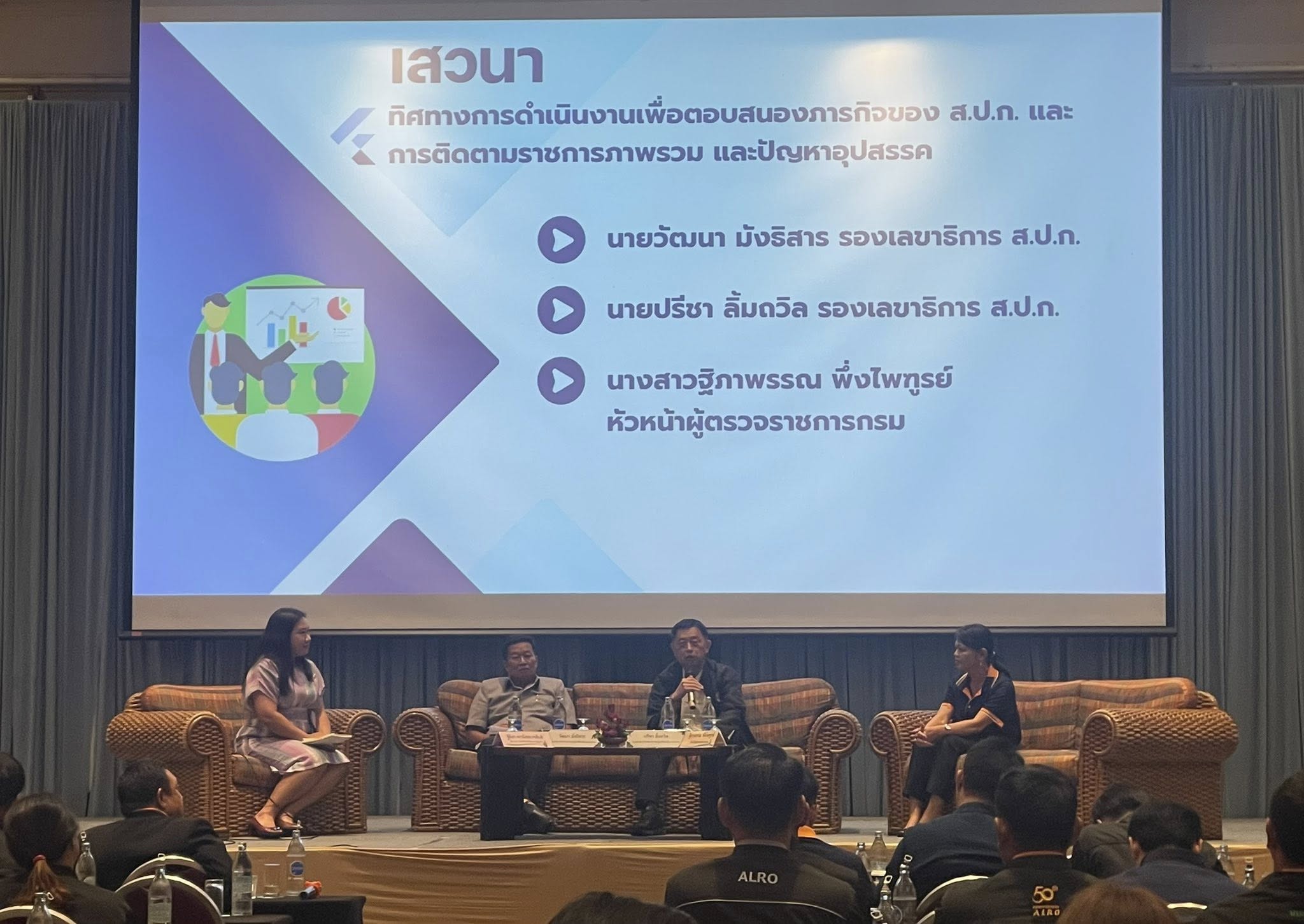 การเสวนา “ทิศทางการดำเนินงานเพื่อตอบสนองภารกิจ ส.ป.ก. และการติดตามราชการภาพรวม และปัญหาอุปสรรค” โดยรองเลขาธิการ ส.ป.ก. และหัวหน้าผู้ตรวจราชการกรม