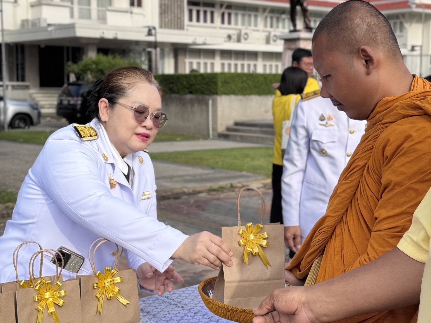 “นางสาวฐิติมา วัฒนจัง” ปฏิรูปที่ดิน จังหวัดปทุมธานี มอบหมายให้ "นางอังศุมาลี ธูปแก้ว" นักวิชาการเงินและบัญชีชำนาญการ พร้อมด้วย "นายณัฐวัตร สนามชัย" นักวิชาการปฏิรูปที่ดินชำนาญการ ร่วมพิธีทำบุญตักบาตรถวายพระราชกุศล และพิธีวางพวงมาลา ในกิจกรรมเนื่องในวันนวมินทรมหาราช 13 ตุลาคม 2568 ณ อาคารศาลารักษ์ปทุม ศาลากลางจังหวัดปทุมธานี โดยมีนายเอกวิทย์ มีเพียร ผู้ว่าราชการจังหวัดปทุมธานี เป็นประธานในพิธี