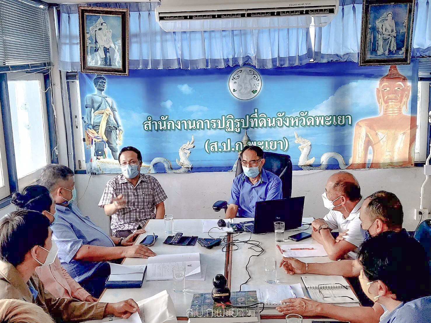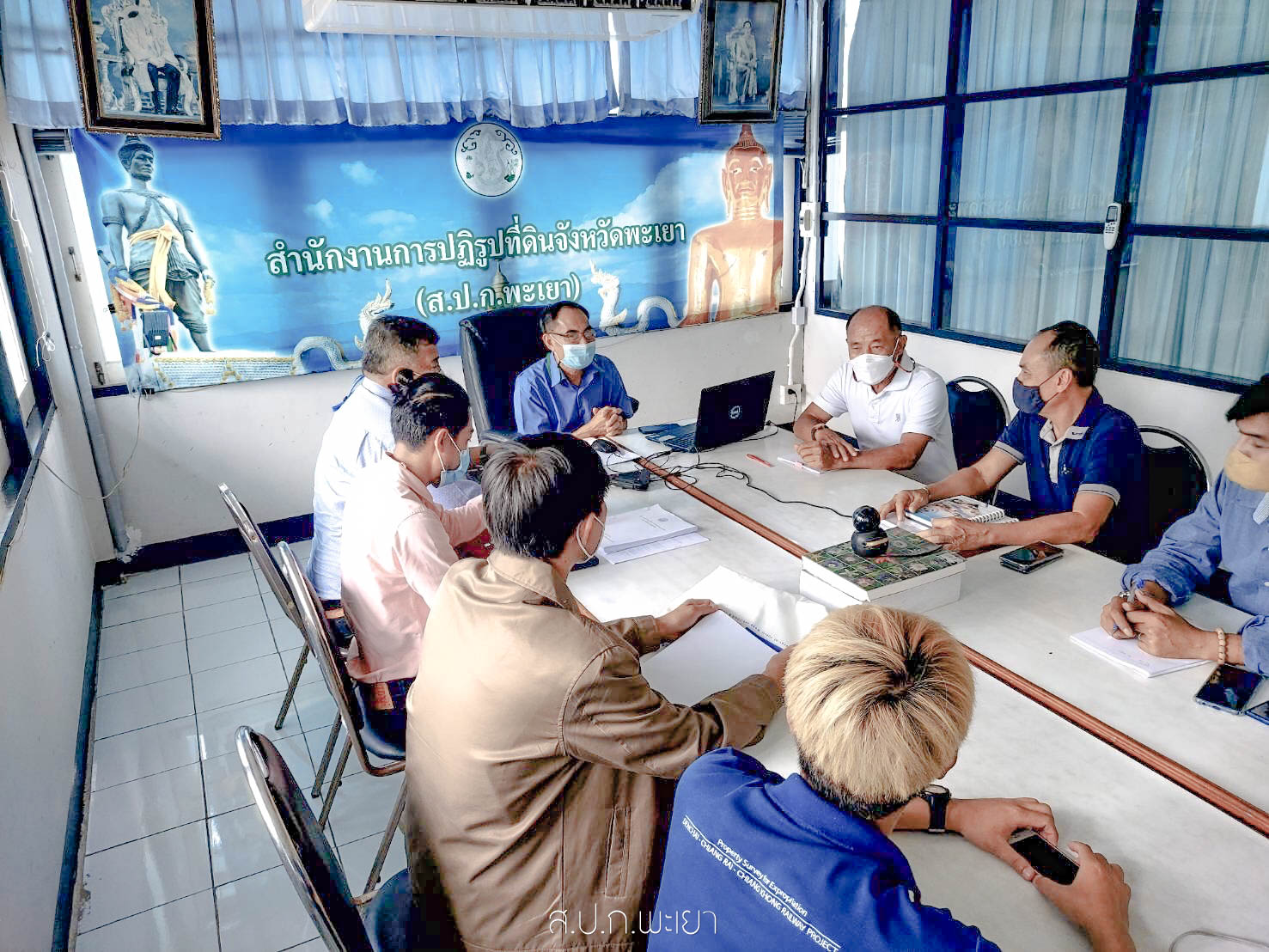 วันอังคารที่ 21 มิถุนายน 2565 นายพิเชษฐ แก้วบุญเสริฐ ปฏิรูปที่ดินจังหวัดพะเยา พร้อมด้วยนายสงกรานต์ ไชยชนะบรรหารญ์ผู้อำนวยการกลุ่มกฎหมายและนายศรายุทธ์ อุประแสน ผู้อ านวยการกลุ่มงานช่างและแผนที่ ประชุมหารือร่วมกับคณะเจ้าหน้าที่ การรถไฟแห่งประเทศไทย เรื่องโครงการก่อสร้างทางรถไฟสายเด่นชัย-งาว-พะเยา-เชียงราย ซึ่งตัดผ่านพื้นที่ในเขตปฏิรูปที่ดินอ าเภอเมืองพะเยา อำเภอดอกคำใต้ อ าเภอภูกามยาว จังหวัดพะเยา ณ ห้องประชุม ส.ป.ก.พะเยา