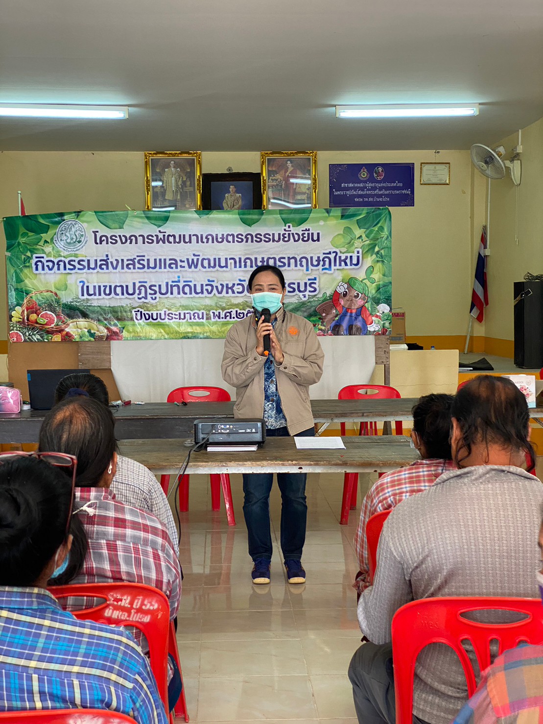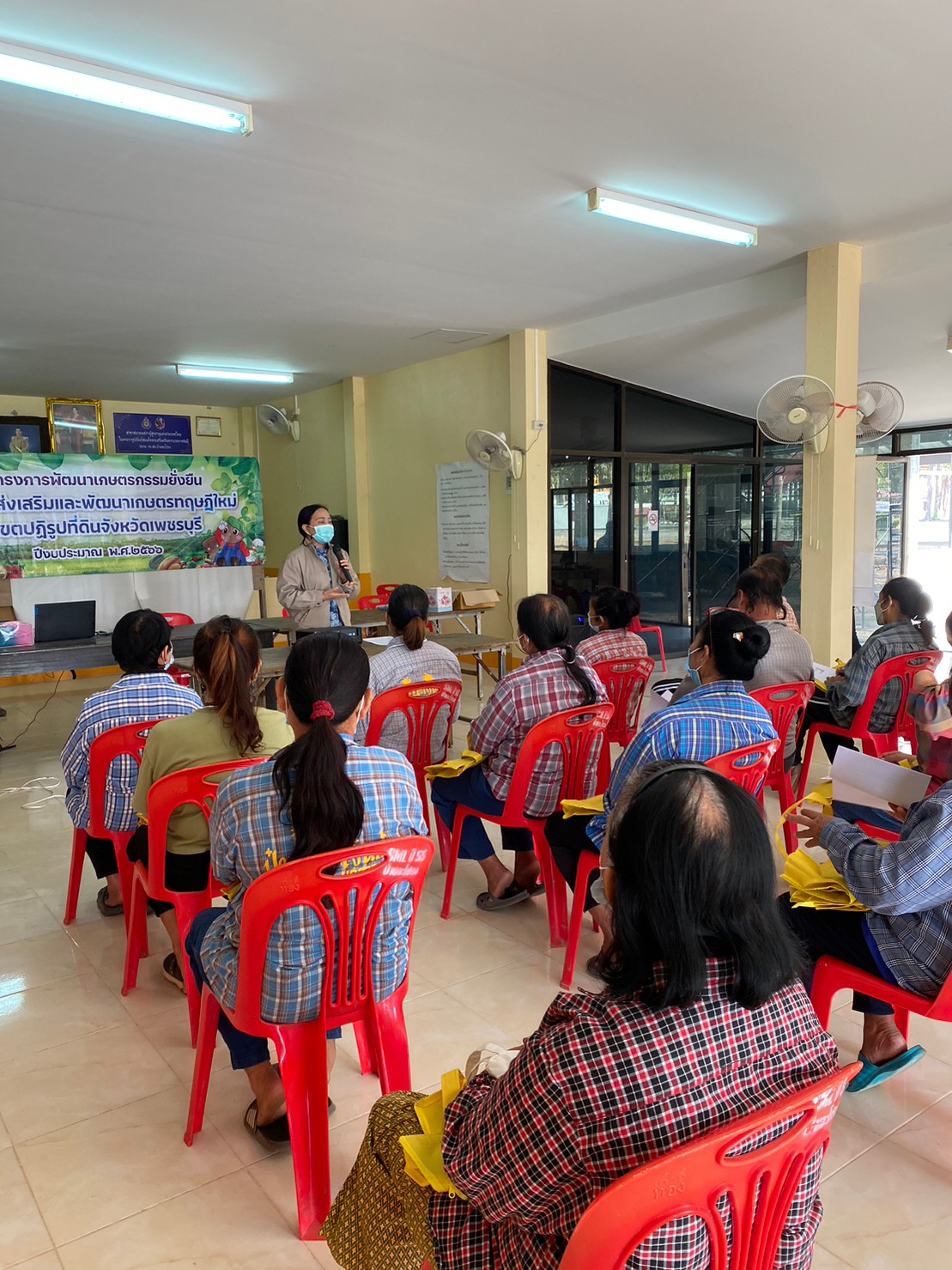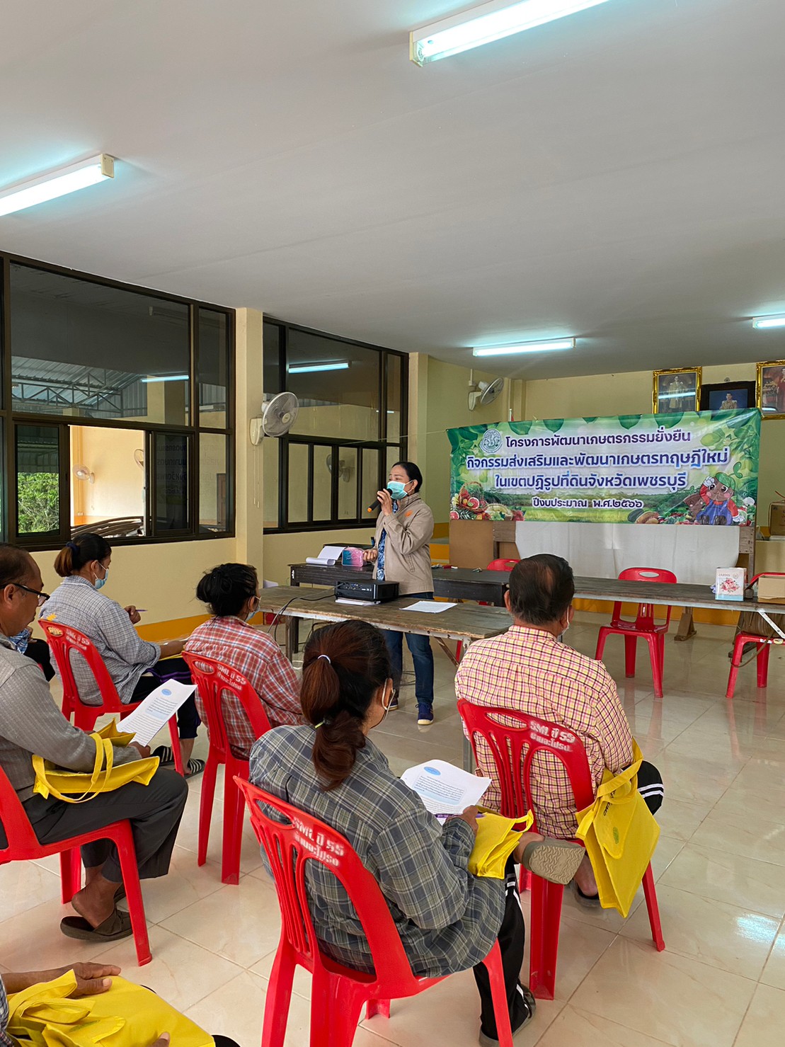 1. นายสุธี มีมาก เจ้าพนักงานการเกษตร ศูนย์วิจัยและพัฒนาการเกษตรเพชรบุรี บรรยายความรู้ในหัวข้อ การเตรียมความพร้อมสู่การปฏิบัติทางการเกษตรที่ดี (GAP)