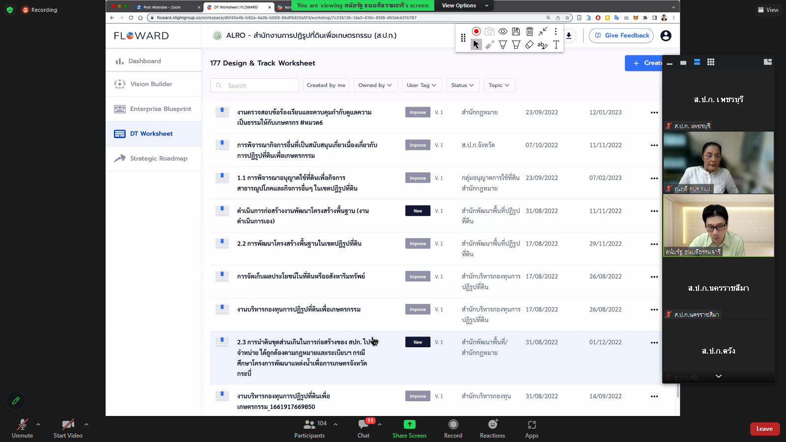 วันที่ 16 กุมภาพันธ์ 2566 เวลา 16.00 น. นางสาวพอใจ คล้ายสวน ปฏิรูปที่ดินจังหวัดเพชรบุรี มอบหมายนางสาวขวัญใจ เพชรสวน ผู้อำนวยการกลุ่มยุทธศาสตร์และการปฏิรูปที่ดิน นายอดุลย์ สินธุสน ผู้อำนวยการกลุ่มการเงินบัญชีและจัดเก็บผลประโยชน์ และนางสาวสาวิตรี ยอดหอม นิติกร เข้าร่วมประชุมติดตามงานโครงการจ้างที่ปรึกษาเพื่อศึกษาแนวทางการบริหารจัดการองค์กรแบบอไจล์ (Agile) สู่การเป็นองค์กรดิจิทัลอย่างยั่งยืน ของ ส.ป.ก. ผ่านระบบประชุมทางไกลออนไลน์ (Zoom meeting) เพื่อรับฟังผลการดำเนินงาน พร้อมทั้ง ทบทวนการดำเนินงาน และพัฒนางานของ ส.ป.ก. อย่างเป็นระบบ