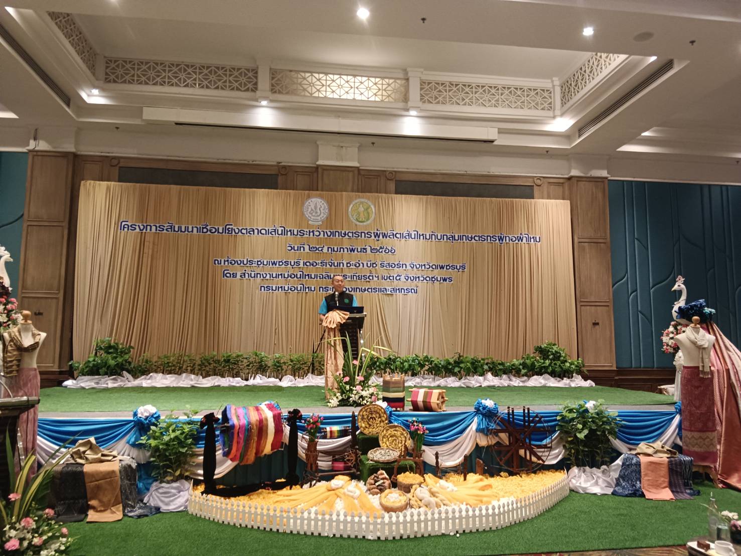 วันที่ 24 กุมภาพันธ์ 2566 เวลา 13.30 น. ดร.เฉลิมชัย ศรีอ่อน รัฐมนตรีว่าการกระทรวงเกษตรและสหกรณ์ เป็นประธานเปิดงานโครงการสัมมนาเชื่อมโยงตลาดเส้นไหมระหว่างเกษตรกรผู้ผลิตเส้นไหม กับกลุ่มเกษตรกรผู้ทอไหม เพื่อเชื่อมโยงตลาดเส้นไหมให้เกษตรกรผู้ปลูกหม่อนเลี้ยงไหมผลิตเส้นไหม มีแหล่งจำหน่ายเส้นไหม และกลุ่มเกษตรกร ผู้ทอผ้ามีแหล่งซื้อวัตถุดิบเส้นไหมที่มีคุณภาพและราคาที่เป็นธรรม รวมถึงเพื่อให้เกษตรกรทอผ้าไหมในพื้นที่สำนักงานหม่อนไหมเฉลิมพระเกียรติฯ เขต 5 จังหวัดชุมพร มีการทอผ้าไหมเพิ่มมากขึ้น โดยมีนายณัฏฐชัย นำพูลสุขสันติ์ ผู้ว่าราชการจังหวัดเพชรบุรี ผู้บริหารกระทรวงเกษตรและสหกรณ์ นางสาวพอใจ คล้ายสวน ปฏิรูปที่ดินจังหวัดเพชรบุรี นางสาวพัชรี พันธ์รอด ผู้อำนวยการกลุ่มกฎหมาย ส.ป.ก.เพชรบุรี นางสาวนงลักษณ์ เล็กน้อย หัวหน้าฝ่ายบริหารทั่วไป ส.ป.ก.เพชรบุรี และเจ้าหน้าที่ที่เกี่ยวข้อง เข้าร่วมพิธีดังกล่าว ณ ห้องเพชรบุรี โรงแรมรีเจ้นท์ ชะอำ หัวหิน อำเภอชะอำ จังหวัดเพชรบุรี