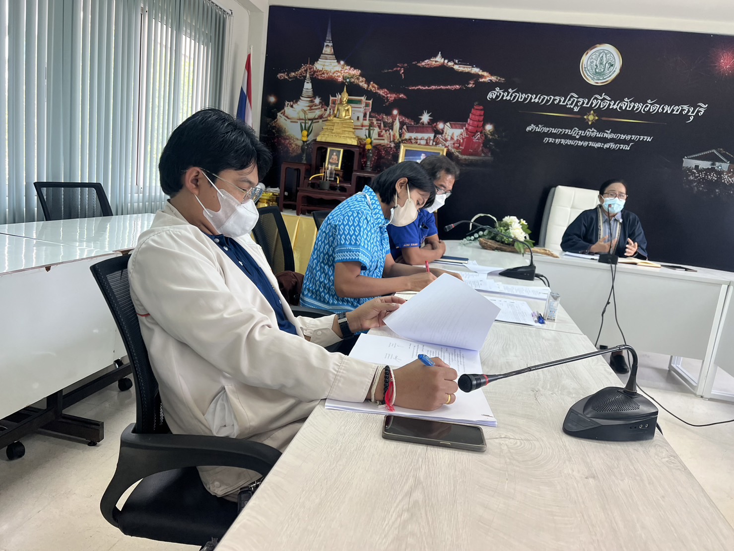 วันที่ 7 เมษายน 2566 เวลา 10.00 น. นางสาวพอใจ คล้ายสวน ปฏิรูปที่ดินจังหวัดเพชรบุรี จัดประชุมสำนักงานการปฏิรูปที่ดินจังหวัดเพชรบุรี ครั้งที่ 3/2566 โดยมีข้าราชการ ลูกจ้างประจำ พนักงานราชการ และเจ้าหน้าที่ทุกคนเข้าร่วมประชุมโดยพร้อมเพรียงกัน เพื่อรับทราบแนวทาง ระเบียบ การปฏิบัติราชการ การมอบหมายเจ้าหน้าที่เข้าร่วมกิจกรรมจิตอาสา การติดตามผลการปฏิบัติงานและรับฟังปัญหาอุปสรรคของแต่ละกลุ่ม/ฝ่าย และการประชาสัมพันธ์ร่วมแสดงความคิดเห็นเกี่ยวกับร่างระเบียบคณะกรรมการปฏิรูปที่ดินเพื่อเกษตรกรรม (คปก.) เกี่ยวกับการเข้าทำประโยชน์ในที่ดิน ณ ห้องประชุมสำนักงานการปฏิรูปที่ดินจังหวัดเพชรบุรี (ชั้น2)