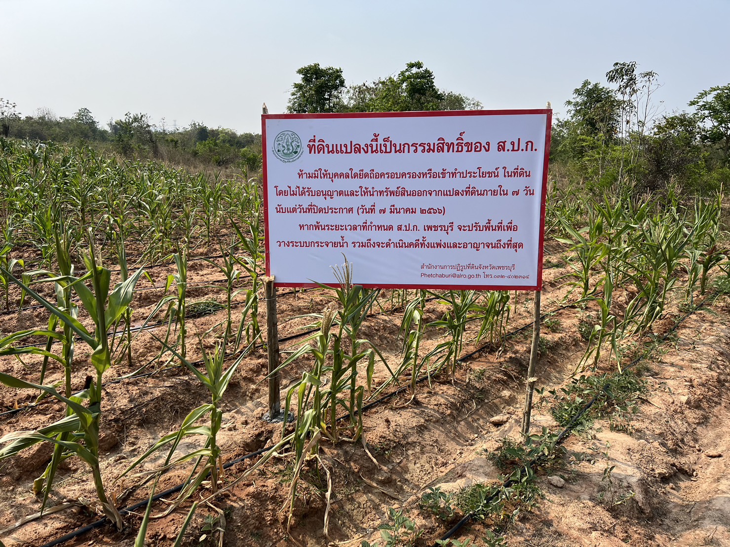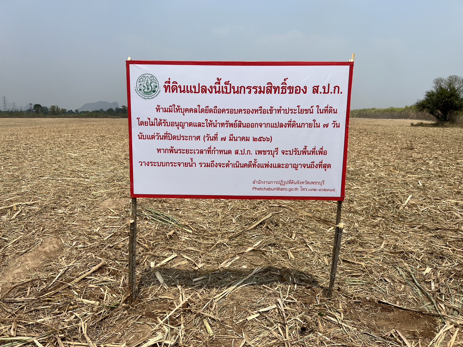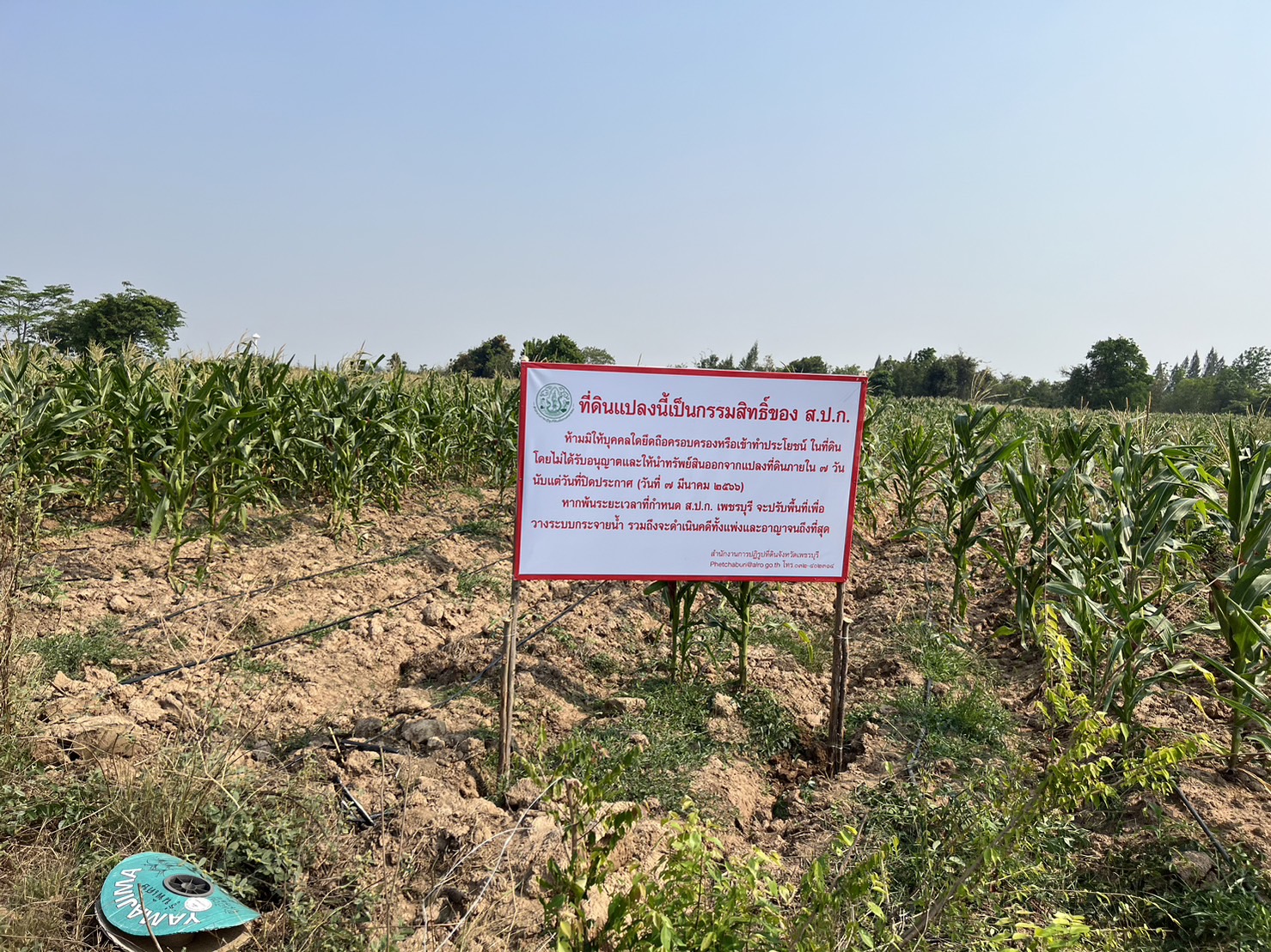 วันที่ 7 มีนาคม 2566 นางสาวพอใจ คล้ายสวน ปฏิรูปที่ดินจังหวัดเพชรบุรี มอบหมายนายศุภกิจ แก้วทรงเกษ ผู้อำนวยการกลุ่มงานช่างและแผนที่ และเจ้าหน้าที่ ส.ป.ก. เพชรบุรี ดำเนินการปักป้ายแสดงแนวเขตแปลงที่ดินกรรมสิทธิ์ของ ส.ป.ก. เพื่อป้องกันการบุกรุก ยึดถือครอบครอง หรือเข้าทำประโยชน์ในที่ดินโดยไม่ได้รับอนุญาตและให้นำทรัพย์สินออกจากแปลงที่ดินภายใน 7 วัน นับแต่วันที่ปิดประกาศ จำนวน 6 จุด ณ แปลงเกษตรกรรมพื้นที่โครงการแก้ไขปัญหาที่ดินทำกินเกษตรกรสภาประชาชน 4 ภาค ตำบลกลัดหลวง ตำบลเขากระปุก อำเภอท่ายาง จังหวัดเพชรบุรี