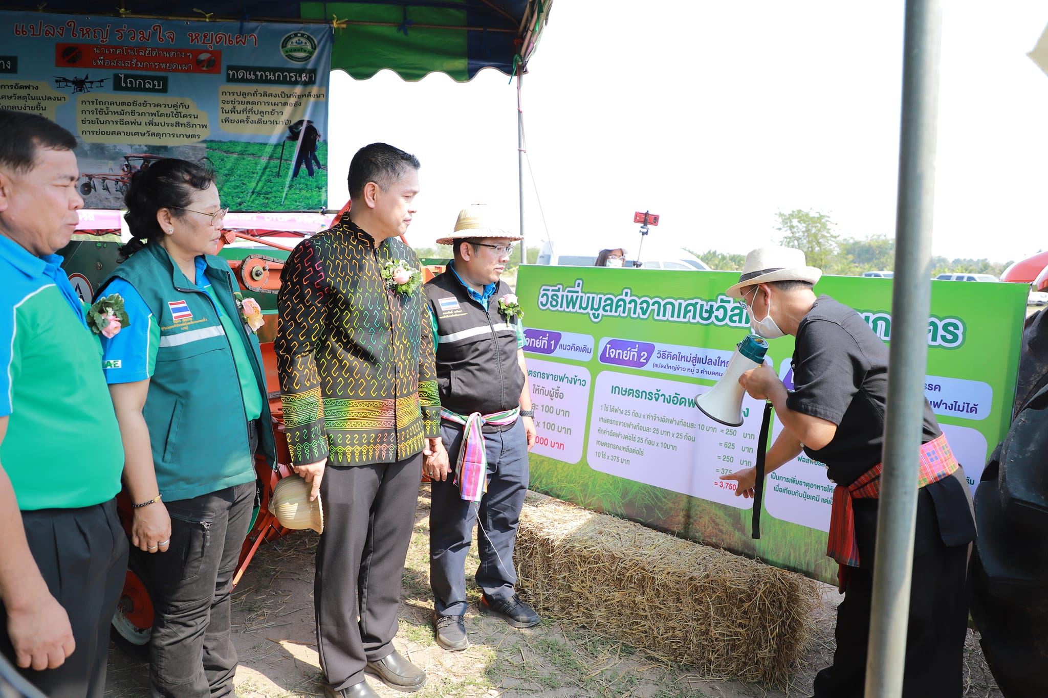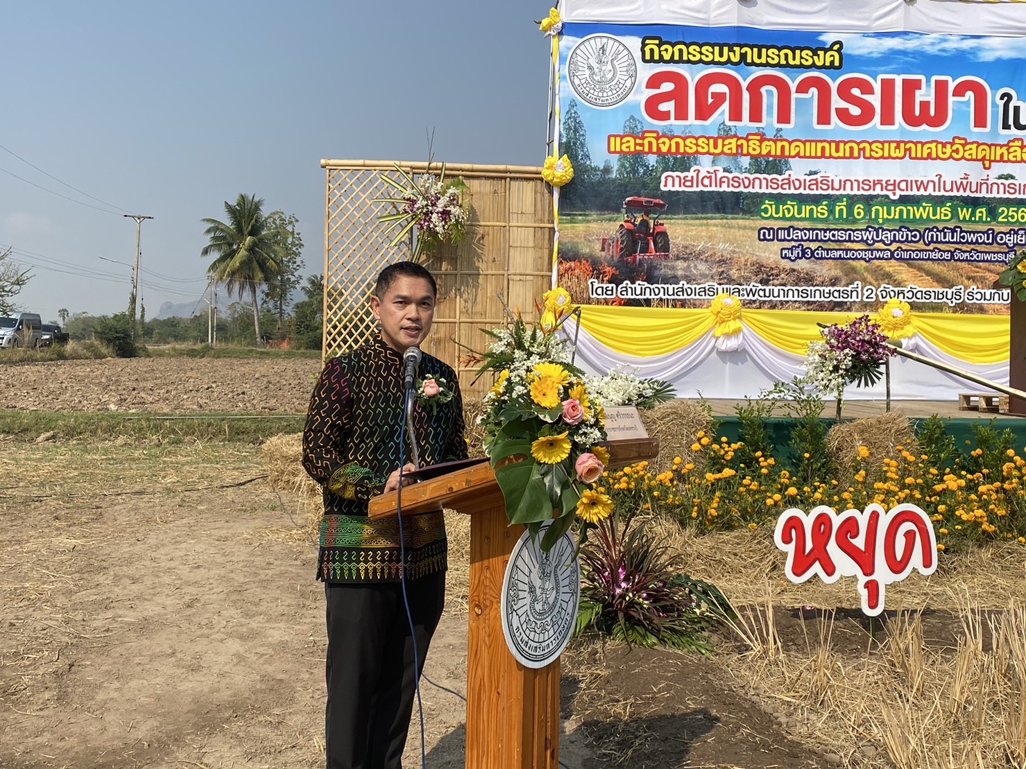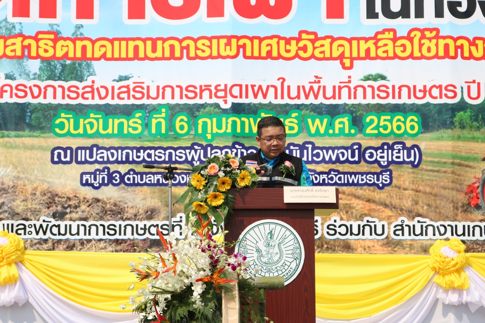 วันที่ 6 กุมภาพันธ์ 2566 นางสาวพอใจ คล้ายสวน ปฏิรูปที่ดินจังหวัดเพชรบุรี เข้าร่วมงานสาธิตทดแทนการเผาเศษวัสดุเหลือใช้ทางการเกษตร ภายใต้โครงการส่งเสริมการหยุดเผาในพื้นที่การเกษตร ปี 2566 เพื่อสร้างการรับรู้ให้เกษตรกรตระหนักถึงผลกระทบจากการเผาในพื้นที่การเกษตร และนำเสนอทางเลือกการใช้ประโยชน์จากเศษวัสดุทางการเกษตรทดแทนการเผา พร้อมทั้งส่งเสริมให้เกษตรกรสามารถปรับเปลี่ยนวิธีการผลิตไปสู่การทำการเกษตรแบบปลอดการเผา โดยมีนายครองศักดิ์ สงรักษา รองอธิบดีกรมส่งเสริมการเกษตร เป็นประธานในพิธี ณ แปลงเกษตรกรของนายไพโรจน์ อยู่เย็น ประธานแปลงใหญ่ข้าว หมู่ที่ 3 ตำบลหนองชุมพล อำเภอเขาย้อย จังหวัดเพชรบุรี