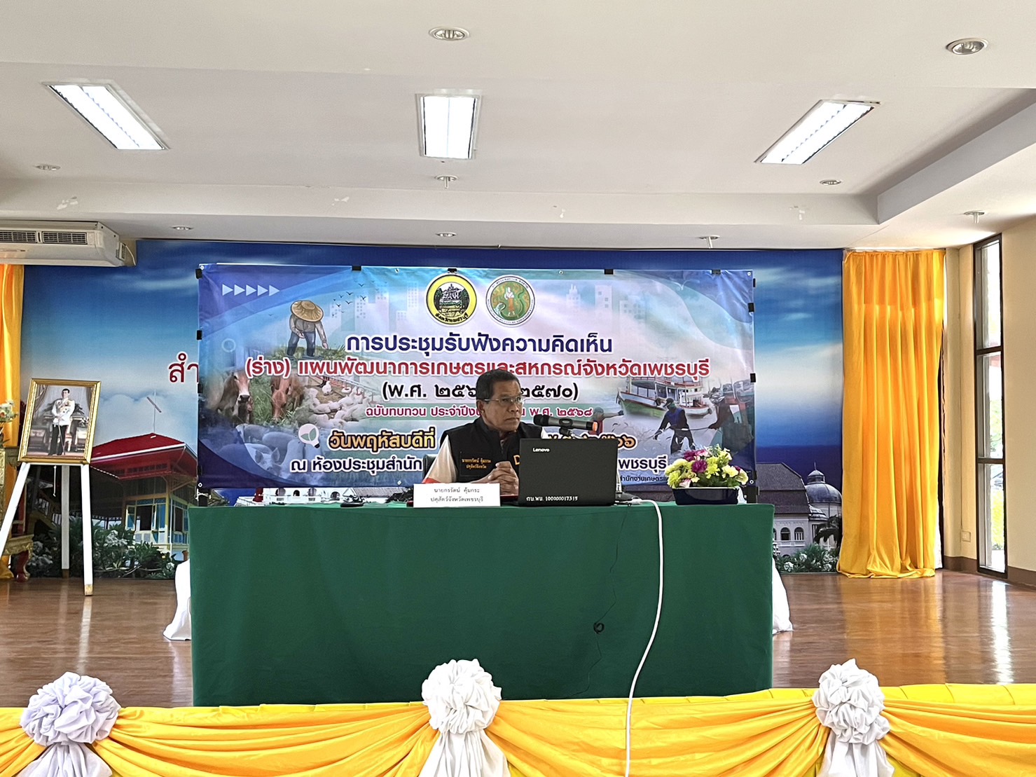 วันที่ 17 สิงหาคม 2566 เวลา 08.30 น. นางสาวพอใจ คล้ายสวน ปฏิรูปที่ดินจังหวัดเพชรบุรี และนางสาวสุพรรณิการ์ เครือนพคุณ เจ้าหน้าที่ปฏิรูปที่ดิน เข้าร่วมประชุมรับฟังความคิดเห็น (ร่าง) แผนพัฒนาการเกษตรและสหกรณ์จังหวัดเพชรบุรี (พ.ศ. 2566 - 2570) ฉบับทบทวน ประจำปีงบประมาณ พ.ศ. 2568 จากผู้มีส่วนได้ส่วนเสียต่อการพัฒนาภาคการเกษตรของจังหวัดเพชรบุรี เพื่อให้ได้ข้อคิดเห็น ข้อเสนอแนะ ข้อสังเกต ข้อวิจารณ์ที่เหมาะสมกับสถานการณ์หรือข้อแนะนำของหน่วยงานที่เกี่ยวข้อง โดยมีนายกรรัตน์ คุ้มกระ ปศุสัตว์จังหวัดเพชรบุรี เป็นประธาน ณ ห้องประชุมสำนักงานเกษตรและสหกรณ์จังหวัดเพชรบุรี อำเภอท่ายาง จังหวัดเพชรบุรี