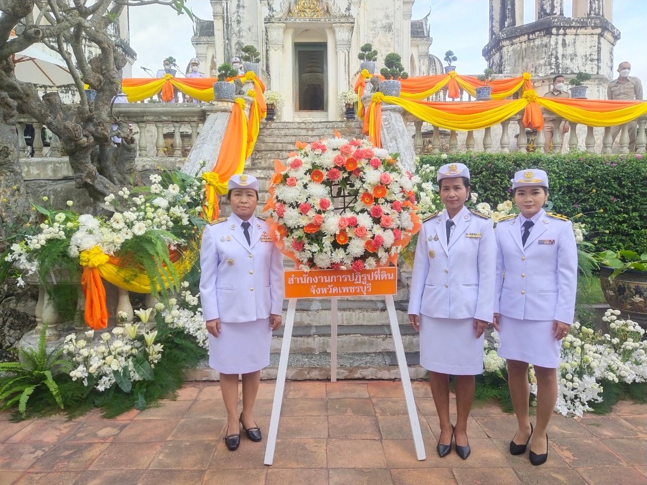 วันที่ 1 ตุลาคม 2565 นางสาวพอใจ คล้ายสวน ปฏิรูปที่ดินจังหวัดเพชรบุรี พร้อมด้วย นางสาวนงลักษณ์ เล็กน้อย หัวหน้าฝ่ายบริหารทั่วไป และนางสาววาสนา นาคขำ นักวิชาการเงินและบัญชี ส.ป.ก.เพชรบุรี ร่วมพิธีวางพวงมาลา และถวายเครื่องราชสักการะ เนื่องในวันรัฐพิธี ที่ระลึกพระบาทสมเด็จพระจอมเกล้าเจ้าอยู่หัว รัชกาลที่ 4 เพื่อเป็นการเฉลิมพระเกียรติ และน้อมรำลึกถึงพระมหากรุณาธิคุณของพระองค์ โดยมีนางวันเพ็ญ มังศรี รองผู้ว่าราชการจังหวัดเพชรบุรี เป็นประธานในพิธี พร้อมทั้งนำคณะข้าราชการ พสกนิกรจังหวัดเพชรบุรี วางพวงมาลาถวายราชสักการะ กล่าวคำถวายราชสดุดีเฉลิมพระเกียรติ ฯ และประกอบพิธีบวงสรวงดวงพระวิญญาณพระบาทสมเด็จพระจอมเกล้าเจ้าอยู่หัว รัชกาลที่ 4 ตลอดจนสักการะสิ่งศักดิ์สิทธิ์ประจำพระราชวัง พระนครคีรี ณ พิพิธภัณฑ์สถานแห่งชาติ พระนครคีรี จังหวัดเพชรบุรี