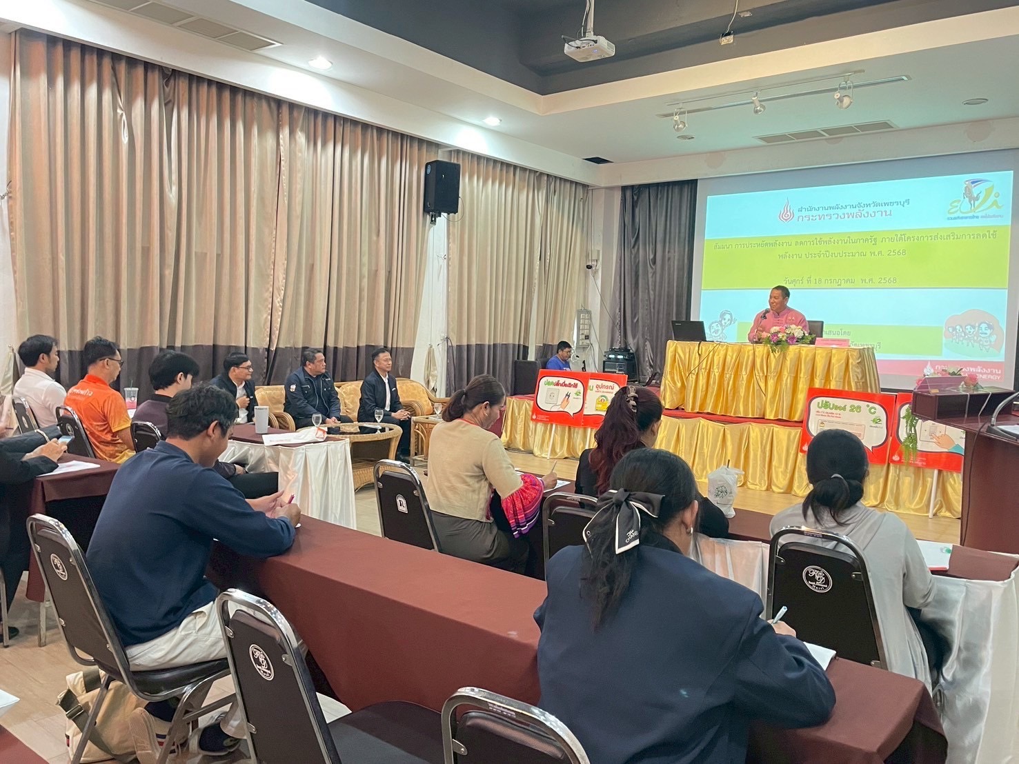 วันศุกร์ที่ 18 กรกฎคม 2568 เวลา 08.30 น.นางสาวยุพา ราชจินดา ปฏิรูปที่ดินจังหวัดเพชรบุรี มอบหมายนางสาวนงลักษณ์ เล็กน้อย หัวหน้าฝ่ายบริหารทั่วไป เข้าร่วมสัมมนาการประหยัดพลังงาน ลดการใช้พลังงานในหน่วยงานภาครัฐ ภายใต้โครงการส่งเสริมการลดใช้พลังงานในภาครัฐ ประจำปีงบประมาณ พ.ศ. 2568 เพื่อเป็นการสร้างความรู้ความเข้าใจเกี่ยวกับการลดการใช้พลังงานในหน่วยงานภาครัฐและวิธีการรายงาน วิธีประมวลผล รวมทั้งวิธีการกรอกข้อมูลลงในเว็บไซต์ดังกล่าว โดยมี นายกองโท สมศักดิ์ แย้มพันธุ์นุ้ย นายอำเภอเมืองเพชรบุรี เป็นประธานกล่าวเปิดการสัมมนา ณ ห้องประชุมมุกดา โรงแรมรอยัลไดมอน อำเภอเมืองเพชรบุรี จังหวัดเพชรบุรี