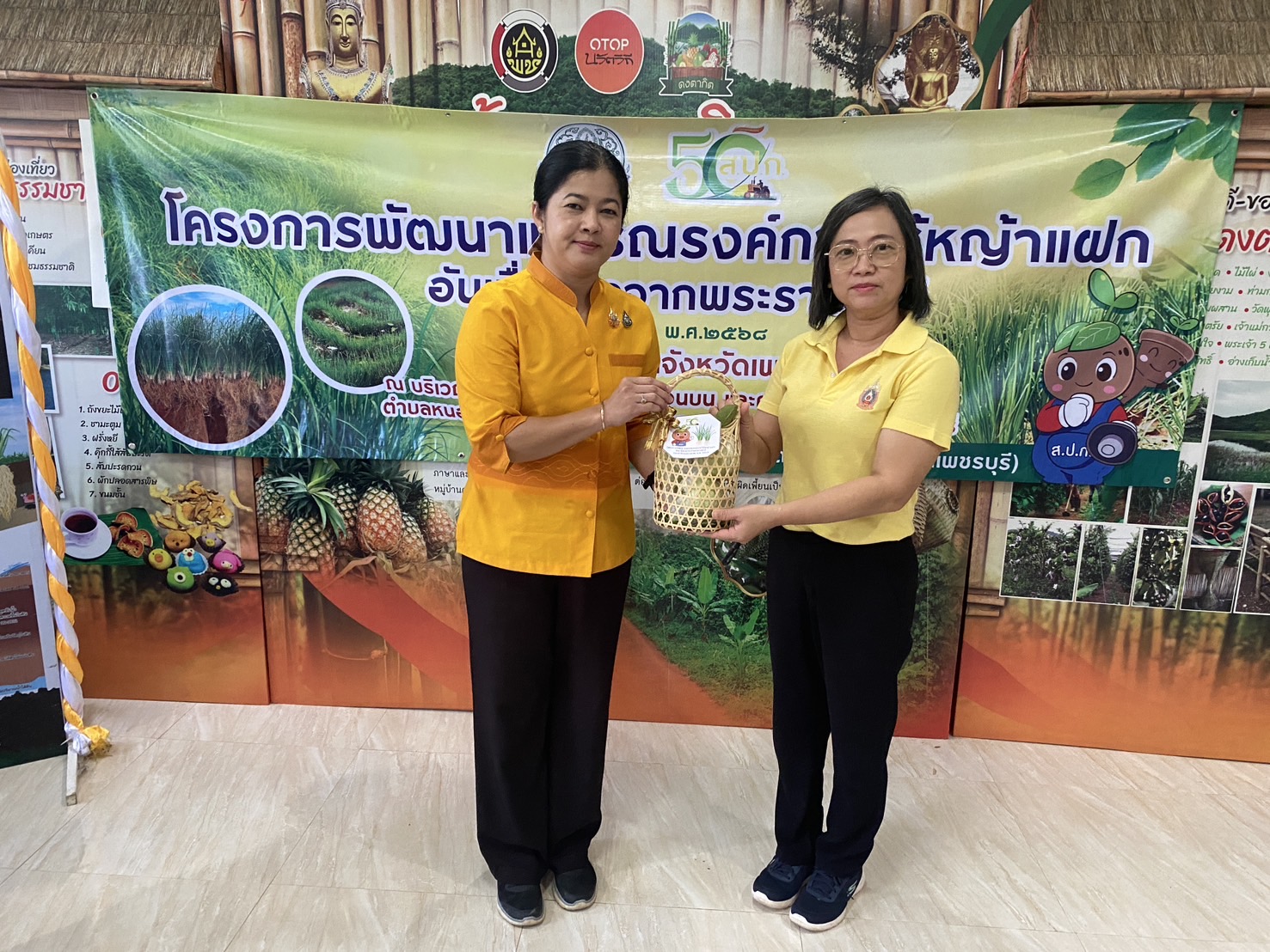 2. การบรรยายเกี่ยวกับพัฒนาและรณรงค์การใช้หญ้าแฝก เพื่อตระหนักถึงความสำคัญของการอนุรักษ์ดินและน้ำ และการใช้ประโยชน์จากหญ้าแฝก โดยวิทยากรจากสถานีพัฒนาที่ดินเพชรบุรี