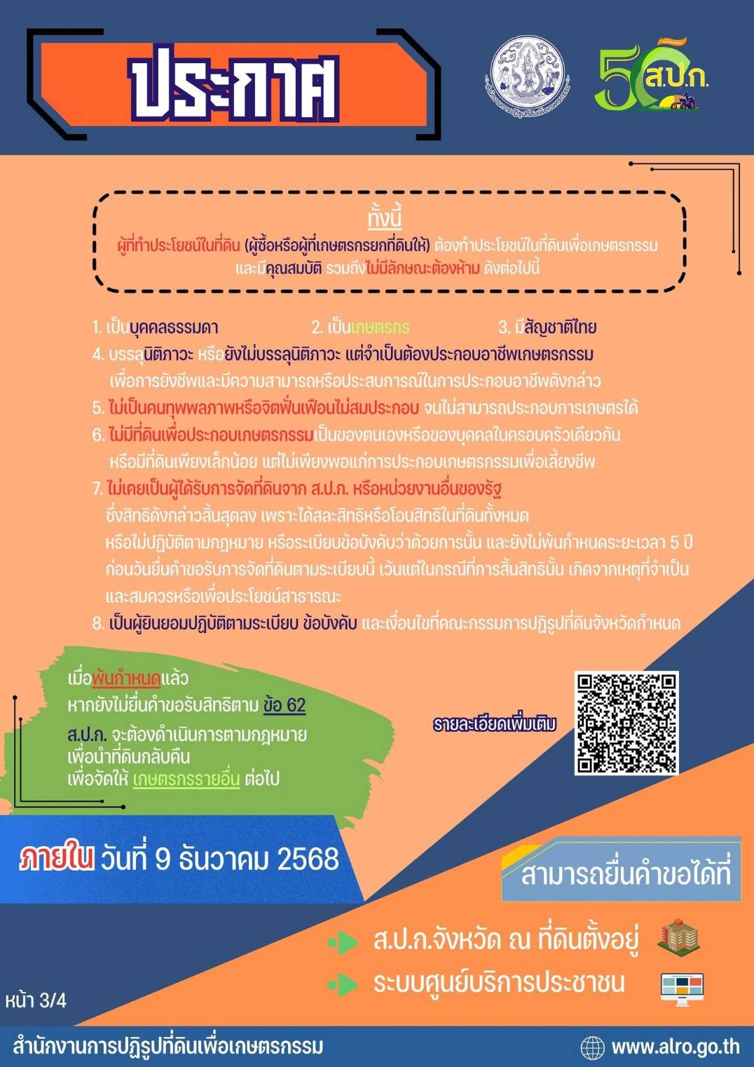 ส.ป.ก.เพชรบุรี ขอประชาสัมพันธ์แจ้งการยื่นคำขอรับการจัดที่ดินให้ถูกต้องตามระเบียนคัดเลือกเกษตรกร ข้อ62