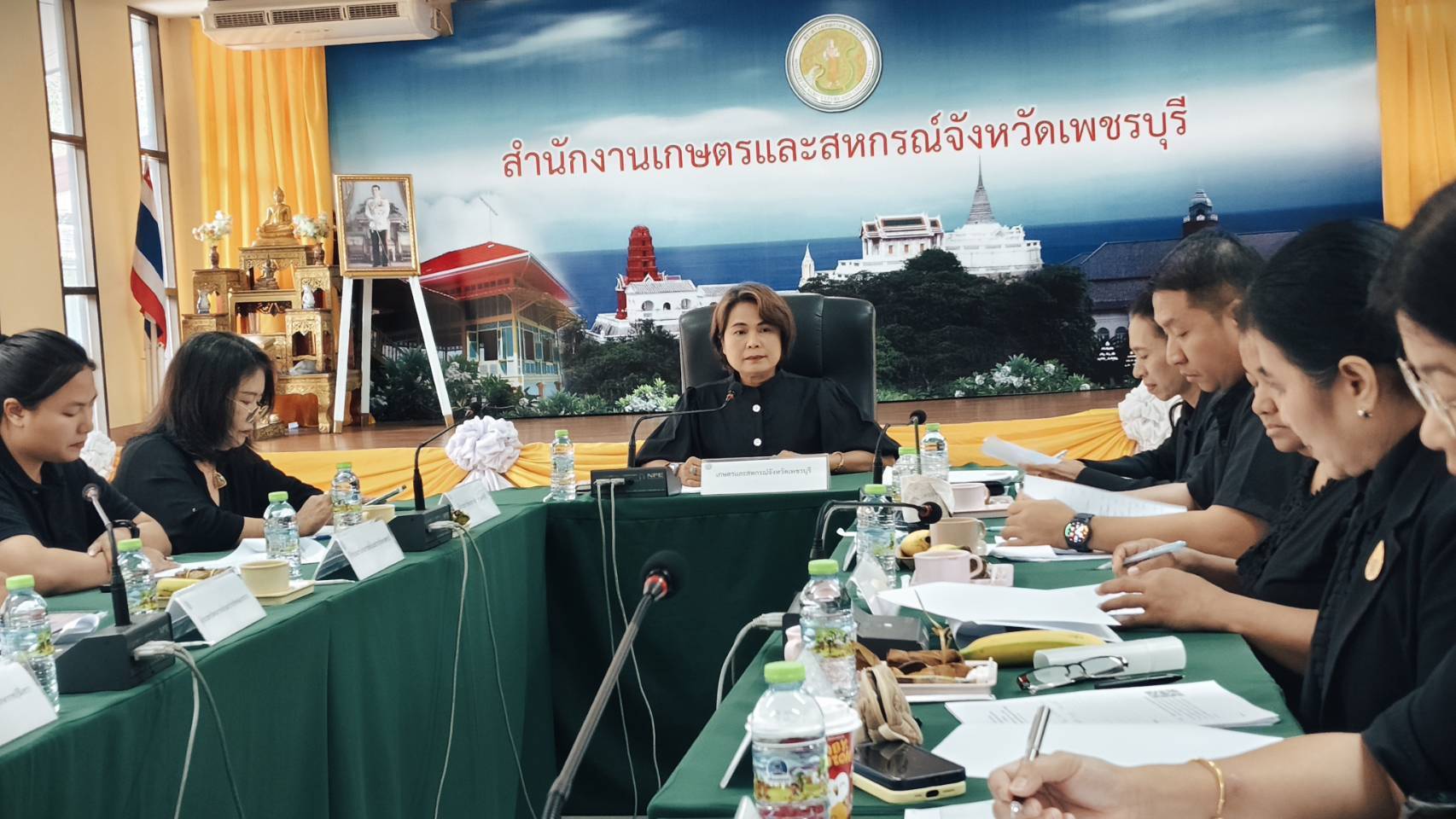 1.การพิจารณาสินค้าเพื่อเข้าร่วมโครงการสินค้าเกษตรและบริการมูลค่าสูง 1 ท้องถิ่น 1 สินค้าเกษตรมูลค่าสูงปีงบประมาณ พ.ศ. 2569 ของจังหวัดเพชรบุรี 2 การพิจารณาสินค้าเกษตรเพื่อจัดทำแผนการเกษตรรายสินค้า ปีงบประมาณ พ.ศ.2569 3 การจัดทำปฏิทินผลผลิตสินค้าเกษตรรายเดือนระดับจังหวัด ปี 2568 และการนำเสนอข้อมูลไปใช้ประโยชน์ โดยมี นางสาวศิริวรรณ เครือเล็ก เกษตรและสหกรณ์จังหวัดเพชรบุรี เป็นประธานการประชุม