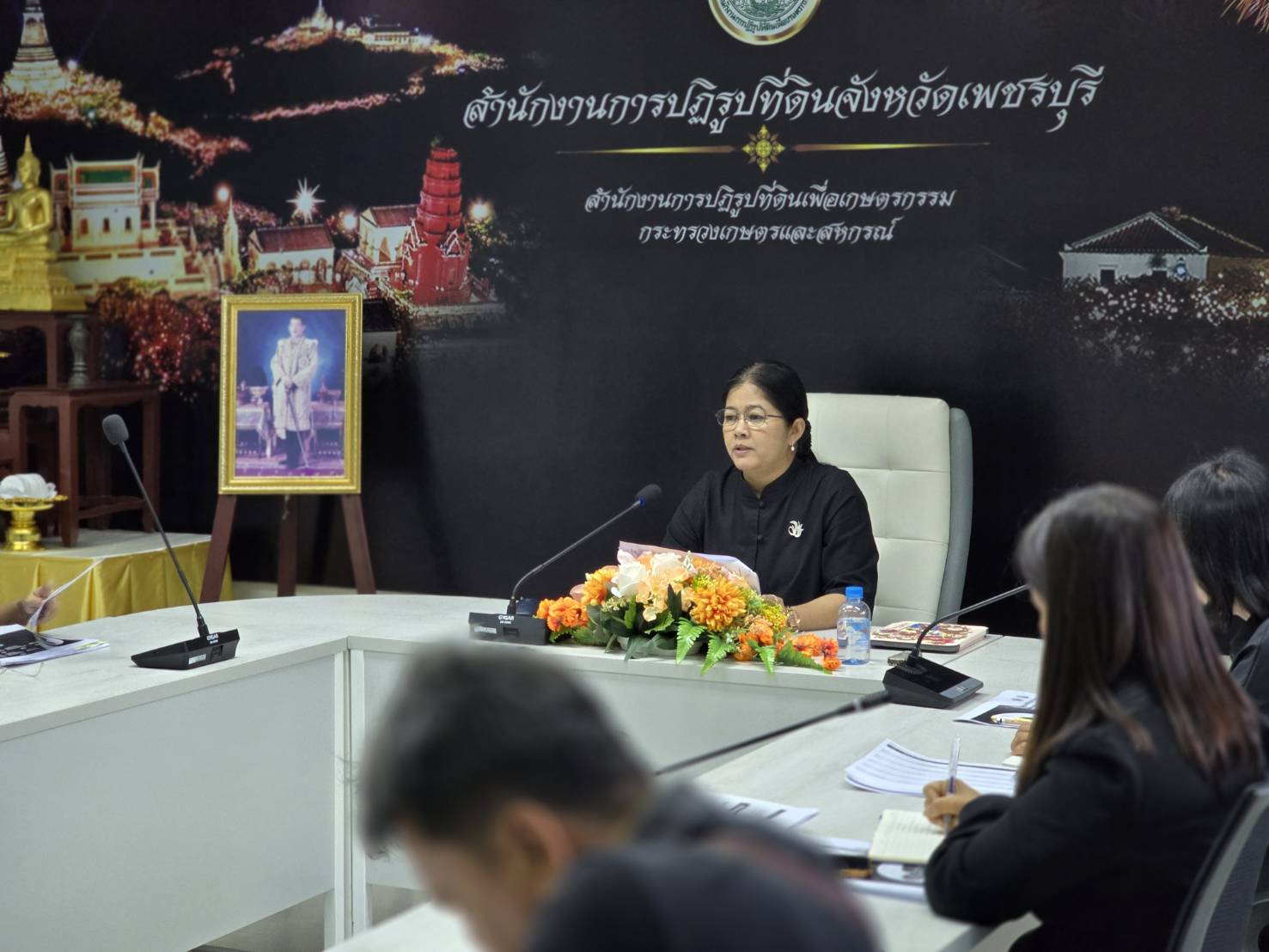 วันพุธที่ 19 พฤศจิกายน 2568 เวลา 16.00 น. นางสาวยุพา ราชจินดา ปฏิรูปที่ดินจังหวัดเพชรบุรี ประชุมข้าราชการและเจ้าหน้าที่ ส.ป.ก.เพชรบุรี เพื่อมอบนโยบาย แนวทาง แผนการปฏิบัติงานปีงบประมาณ พ.ศ. 2569 และเร่งรัดการเบิกจ่ายงบประมาณให้เป็นไปตามมติคณะรัฐมนตรี และมุ่งเน้นการประสานความร่วมมือภายในองค์กร โดยคำนึงถึงประโยชน์ของเกษตรกรและประชาชนที่เข้ามารับบริการเป็นสำคัญ ณ ห้องประชุมสำนักงานการปฏิรูปที่ดินจังหวัดเพชรบุรี ชั้น 2