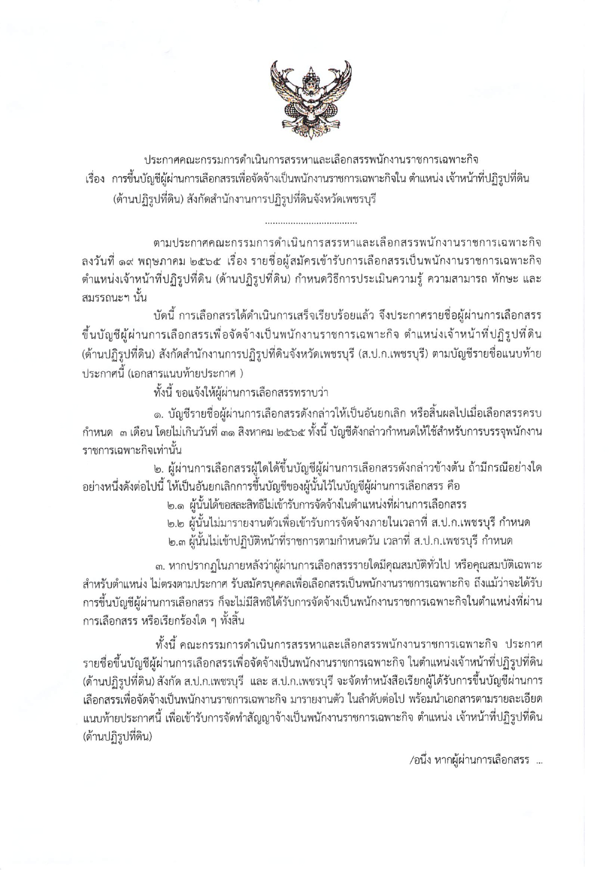 ประกาศคณะกรรมการดำเนินการสรรหาและเลือกสรรพนักงานราชการเฉพาะกิจ เรื่องการขึ้นบัญชีผู้ผ่านการเลือกสรรเพื่อจัดจ้างเป็นพนักงานราชการเฉพาะกิจ
