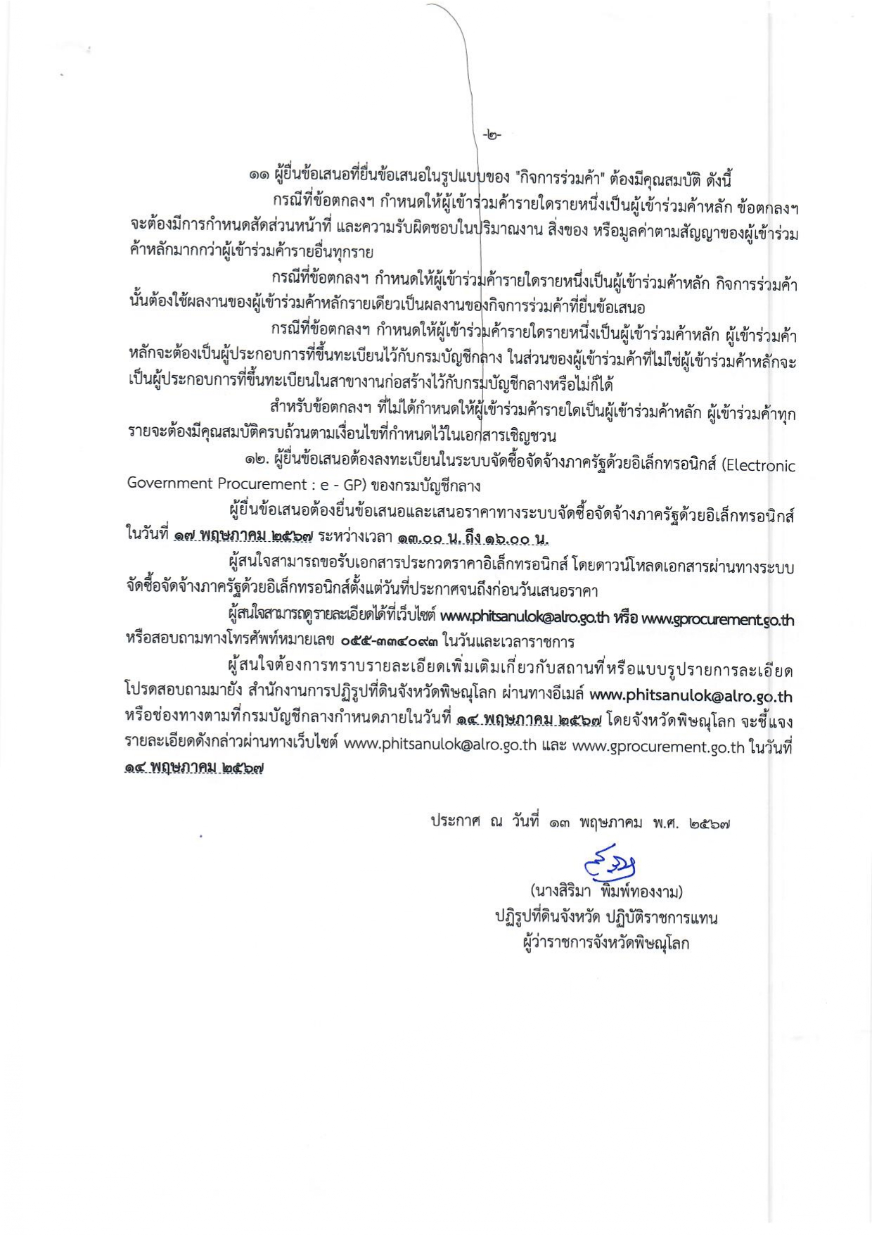 ประกาศจังหวัดพิษณุโลก เรื่อง ประกาศผู้ชนะการเสนอราคา จัดจ้างเหมาบริการบุคคลธรรมดา ตำแหน่งเจ้าหน้าที่ปฏิรูปที่ดิน โดยวิธีเฉพาะเจาะจง