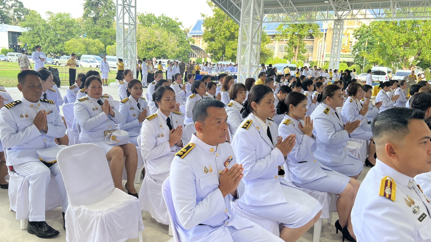 ภายหลังเสร็จสิ้นพิธีทำบุญตักบาตร ได้จัดให้มีพิธีวางพวงมาลาและถวายบังคมเบื้องหน้าพระบรมฉายาลักษณ์ พระบาทสมเด็จพระบรมชนกาธิเบศร มหาภูมิพลอดุลยเดชมหาราช บรมนาถบพิตร โดยมีหัวหน้าส่วนราชการ หน่วยงานรัฐวิสาหกิจ องค์กรปกครองส่วนท้องถิ่น ภาคเอกชน และภาคประชาชน ร่วมวางพวงมาลาอย่างพร้อมเพรียง