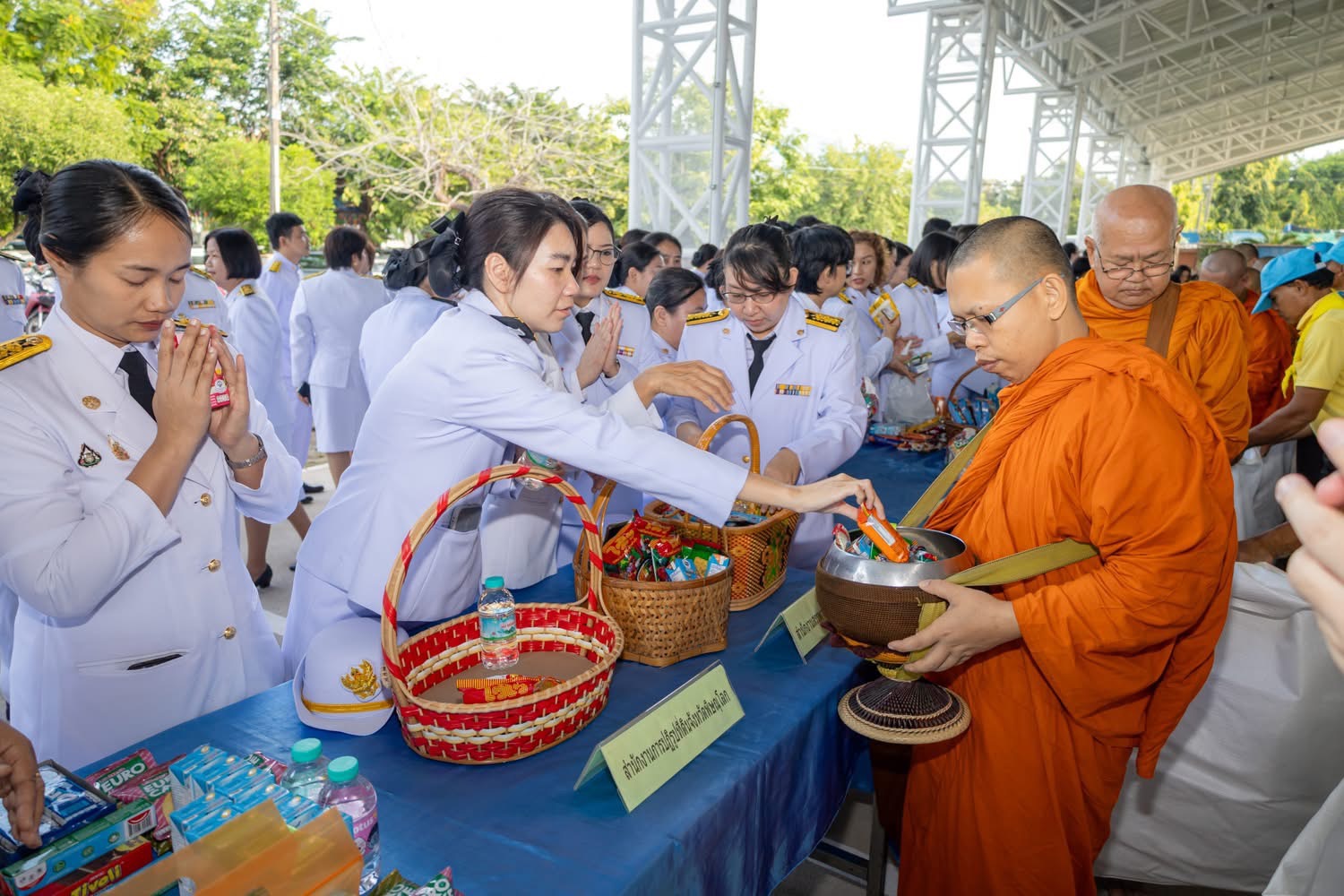 ต่อจากนั้น เป็นพิธีทำบุญตักบาตรถวายพระราชกุศล พระสงฆ์จำนวน 89 รูป เดินรับบิณฑบาตจากหัวหน้าส่วนราชการ ข้าราชการ และประชาชนที่มาร่วมในพิธี เพื่อถวายเป็นพระราชกุศลแด่พระบาทสมเด็จพระบรมชนกาธิเบศร มหาภูมิพลอดุลยเดชมหาราช บรมนาถบพิตร