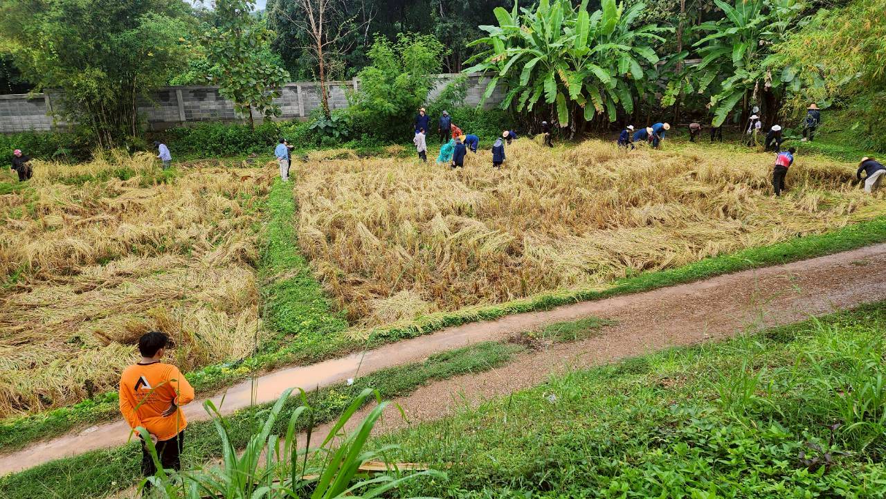 บรรยากาศภายในงานเป็นไปอย่างอบอุ่น สมาชิกทุกคนช่วยกันเก็บเกี่ยวผลผลิตด้วยความตั้งใจและรอยยิ้ม สร้างความประทับใจและเป็นอีกหนึ่งกิจกรรมที่ช่วยเสริมสร้างความสัมพันธ์อันดีภายในองค์กร ส.ป.ก.แพร่ นำไปสู่ความเข้มแข็งในการทำงานร่วมกันต่อไป อีกทั้ง ผลผลิตข้าวทั้งหมดในครั้งนี้ เป็นผลจากความร่วมแรงร่วมใจของเจ้าหน้าที่ ที่ได้ร่วมกันปลูก ดูแล และบำรุงรักษาตลอดฤดูกาลผลิต ซึ่งยิ่งสะท้อนความผูกพันและพลังความสามัคคีในองค์กรอย่างแท้จริง