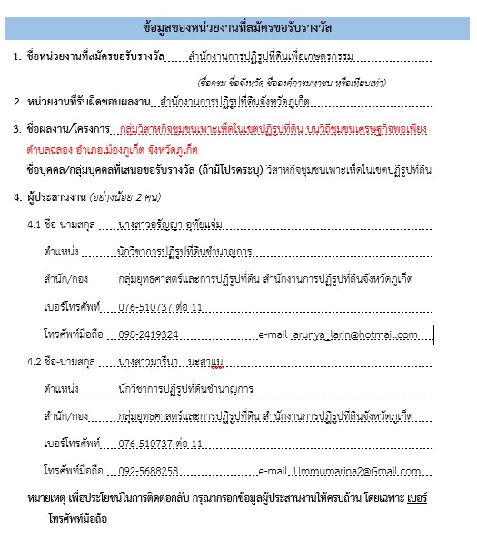 ข้อมูลของหน่วยงานที่สมัครขอรับรางวัล
