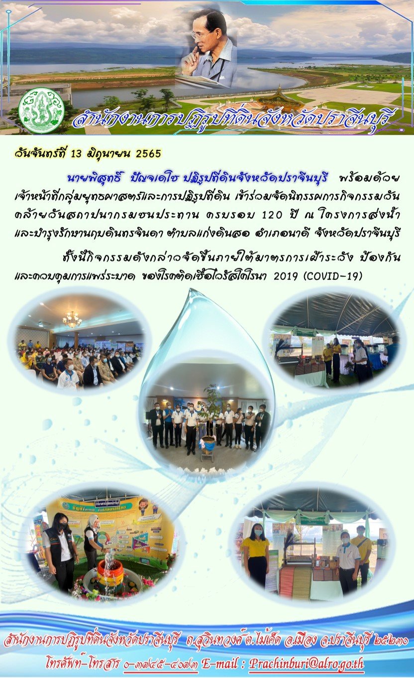 นายพิสุทธิ์ ปัญจเดโช ปฏิรูปที่ดินจังหวัดปราจีนบุรี เข้าร่วมจัดนิทรรศการกิจกรรมวันคล้ายวันสถาปนากรมชนประทาน ครบรอบ 120 ปี ณ โครงการส่งน้ำและบำรุงรักษานฤบดินทรจินดา