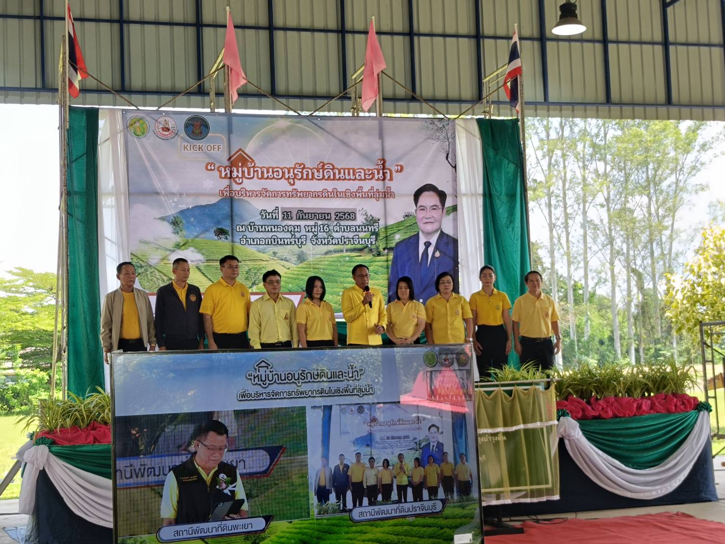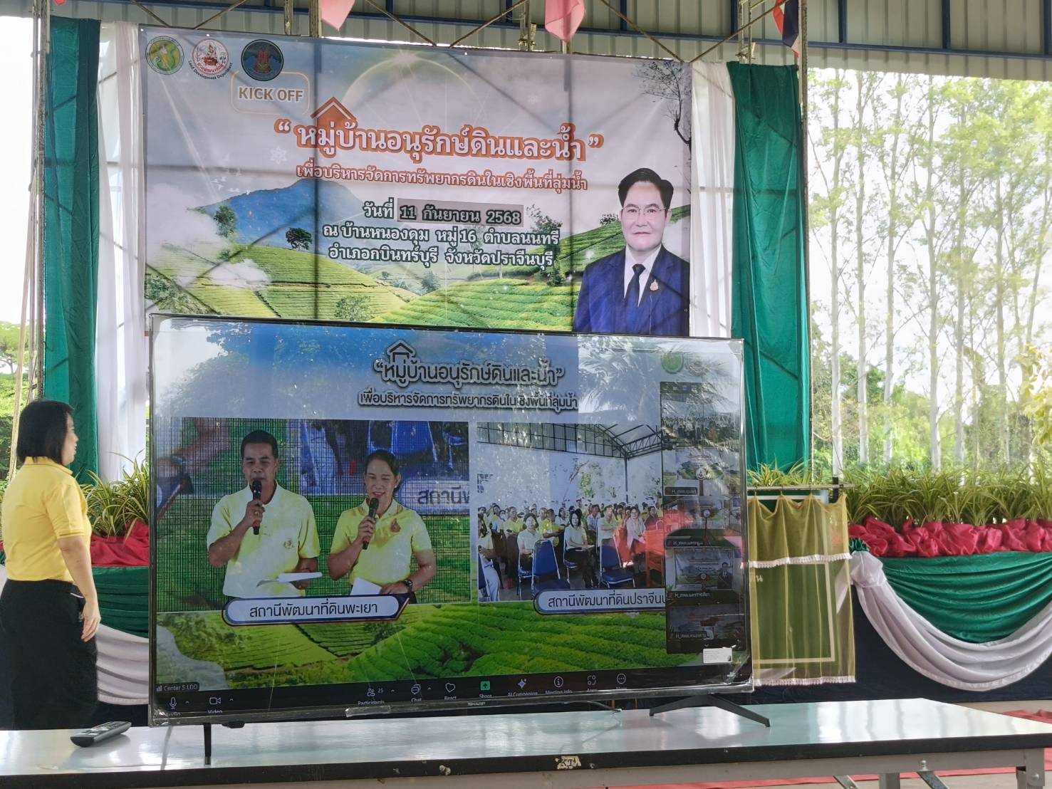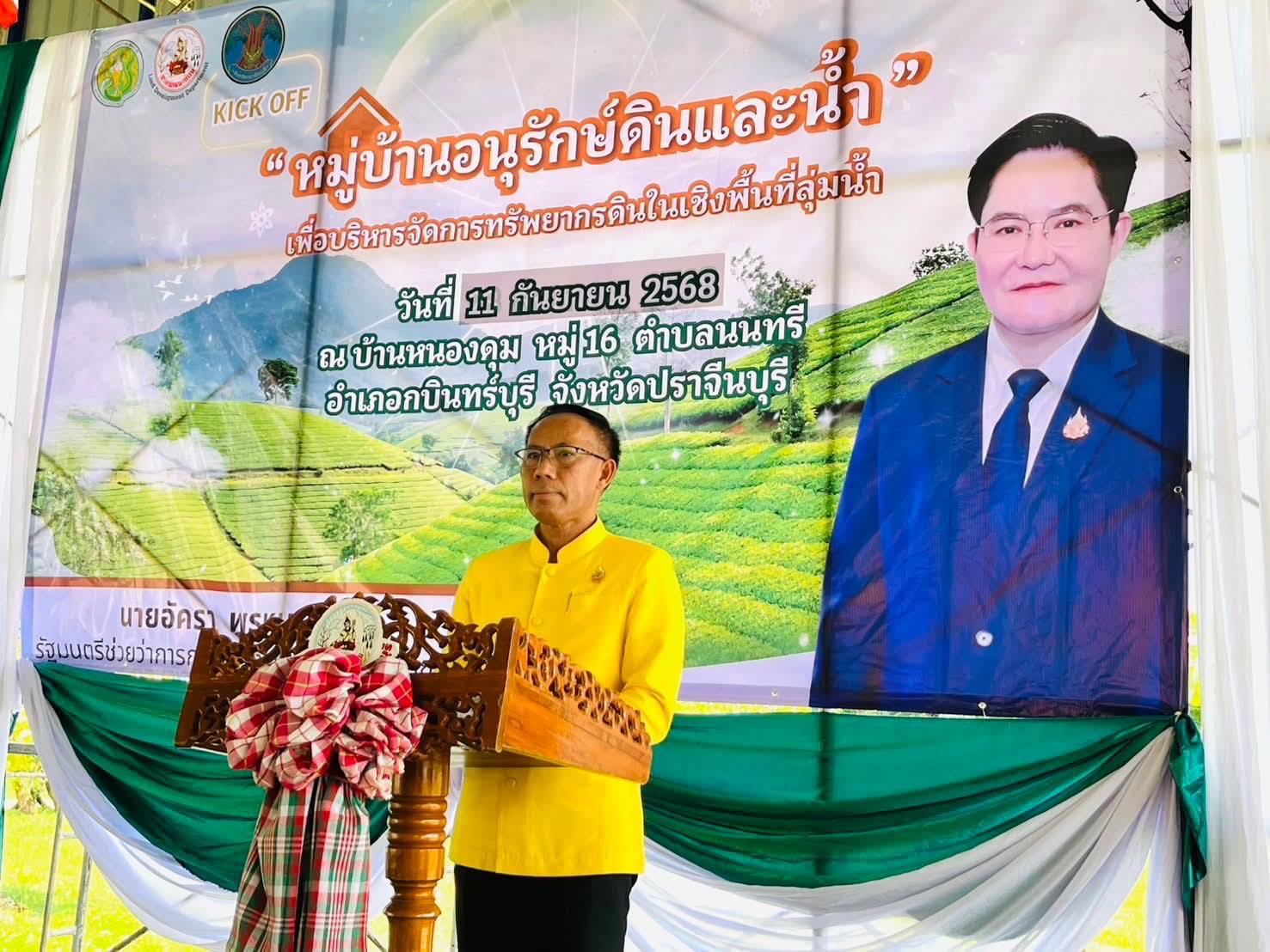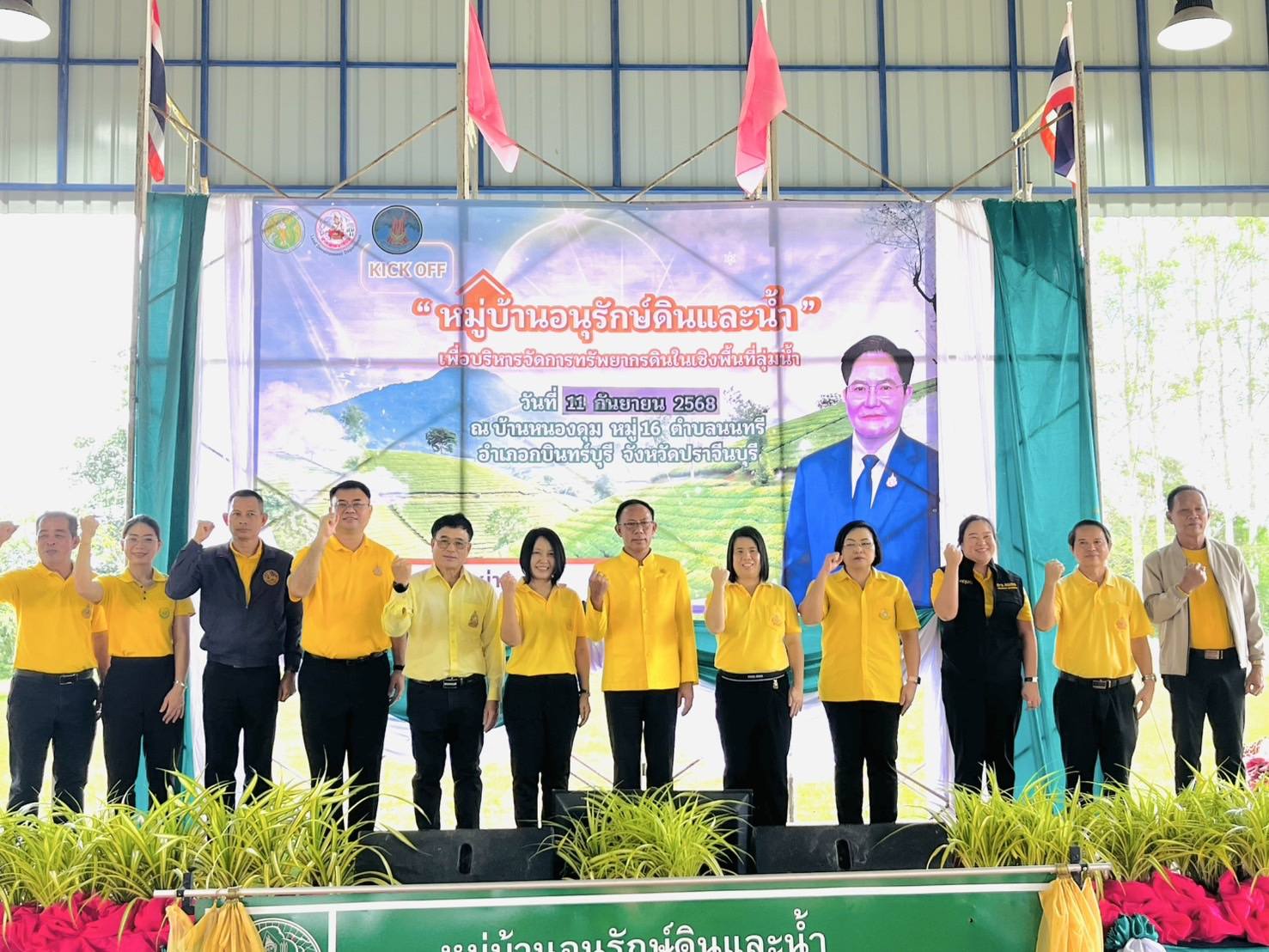 วันที่ 11 กันยายน พ.ศ. 2568 เวลา 09.30 น. นายวิทูล ประดิษฐบุญ ปฏิรูปที่ดินจังหวัดปราจีนบุรี มอบหมายให้เจ้าหน้าที่ กลุ่มยุทธศาสตร์และการปฏิรูปที่ดิน เข้าร่วมพิธีเปิดงาน Kick Off "หมู่บ้านอนุรักษ์ดินและน้ำ"