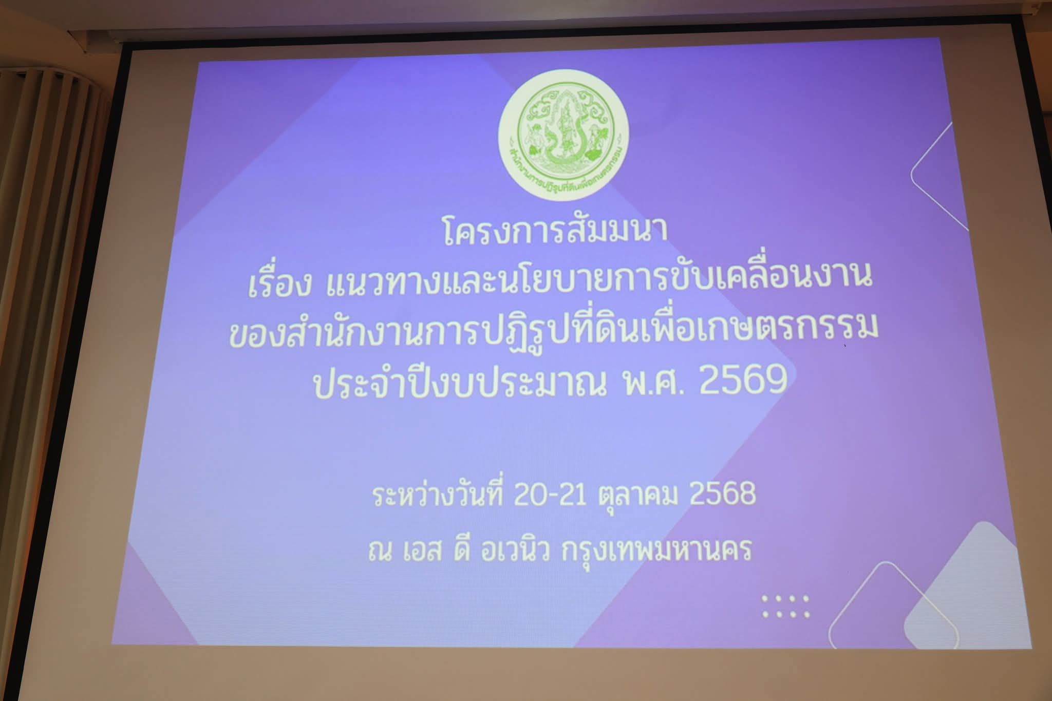 วันจันทร์ที่ 20 ตุลาคม 2568 นายวิทูล ประดิษฐบุญ ปฏิรูปที่ดินจังหวัดปราจีนบุรี พร้อมด้วยเจ้าหน้าที่ ส.ป.ก.ปราจีนบุรี เข้าร่วมโครงการสัมมนา เรื่อง แนวทางและนโยบายการขับเคลื่อนงานของ สำนักงานการปฏิรูปที่ดินเพื่อเกษตรกรรม ประจำปีงบประมาณ พ.ศ.2569
