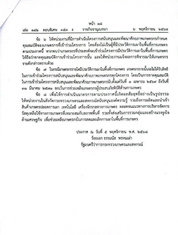 ประกาศกระทรวงเกษตรและสหกรณ์ เรื่อง มาตรการบริหารจัดการป้องกันและแก้ไขปัญหาฝ่นละอองขนาดเล็กไม่เกิน 2.5 ไมครอน (Pm2.5) ภาคเกษตร (ฉบับที่ 2) พ.ศ.2568