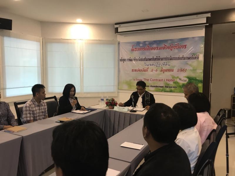 การฝึกอบรมดังกล่าว จัดขึ้นโดยสำนักพัฒนาและถ่ายทอดเทคโนโลยี ส.ป.ก. ระหว่างวันที่ 3-6 มิถุนายน 2561 ณ โรงแรม The contrast i hotel ตำบลปลวกแดง อำเภอปลวกแดง จังหวัดระยอง กลุ่มเป้าหมายเป็นนักส่งเสริมเกษตรอินทรีย์ในเขตปฏิรูปที่ดิน (เจ้าหน้าที่ ส.ป.ก.จังหวัด และเจ้าหน้าที่ ส.ป.ก.ส่วนกลาง) จำนวน 20 คน ทั้งนี้ ส.ป.ก.ระยอง ได้ส่งเจ้าหน้าที่เข้าร่วมการฝึกอบรมในครั้งนี้ด้วย