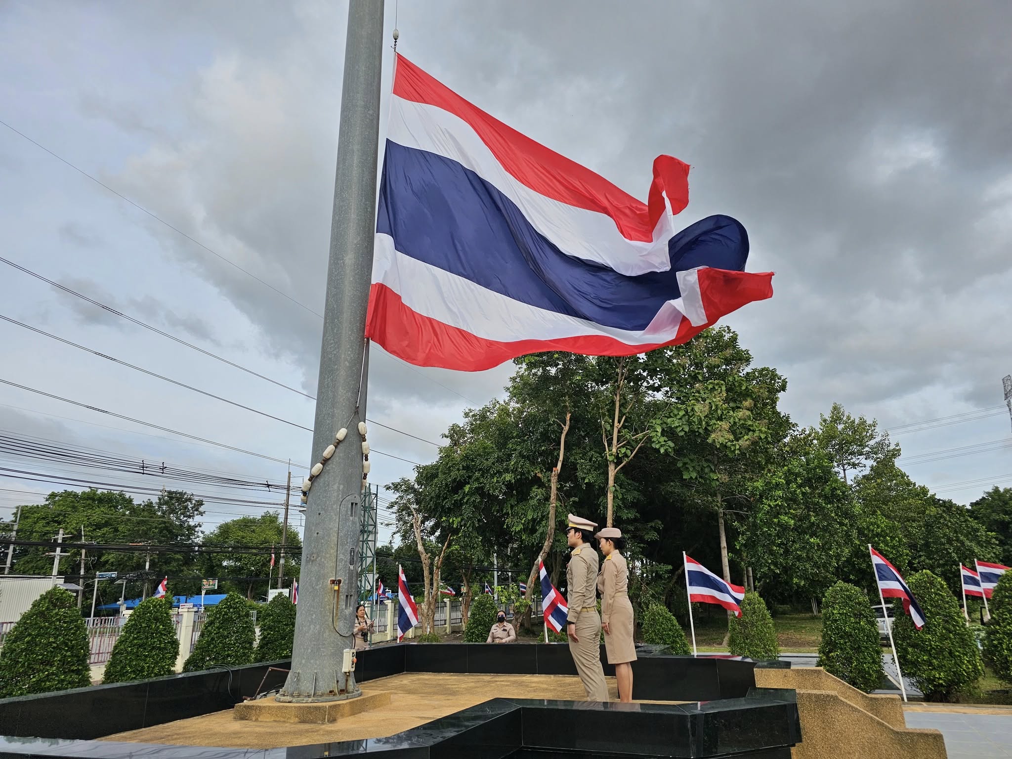 วันที่ 29 กันยายน 2568 เวลา.08.00น. นายภาสกร บุญญลักษม์ ผู้ว่าราชการจังหวัดระยอง นำรองผู้ว่าราชการจังหวัดระยอง ปลัดจังหวัดระยอง หัวหน้าส่วนราชการจังหวัด และข้าราชการ ยืนตรงเคารพธงชาติและเชิญธงชาติไทยขึ้นสู่ยอดเสาพร้อมร้องเพลงชาติไทยโดยพร้อมเพรียงกัน ณ บริเวณหน้าเสาธงชาติไทย ศูนย์ราชการจังหวัดระยอง อำเภอเมืองระยอง จังหวัดระยอง